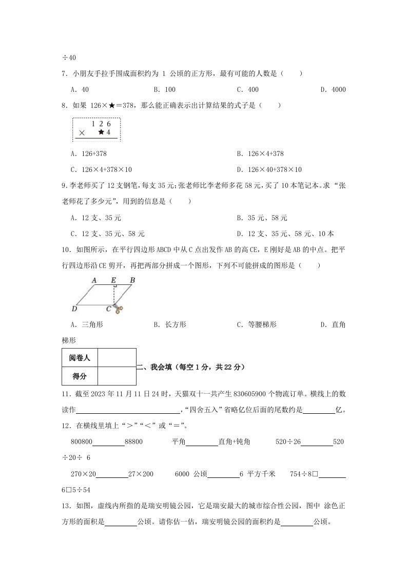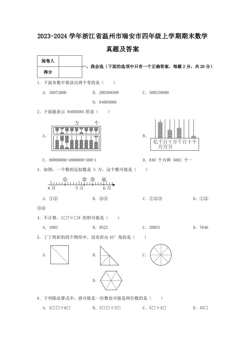 当前位置: 首页小学资源小学四年级正文 2023-2024学年浙江省温州市瑞安市四年级上学期期末数学真题及答案(Word版)_共19页 小学四年级 1 周前 0 0 10 以上为部分内容预览,如需源文档请登录您的会员账号进行下载! 声明:本站所有文章,如无特殊说明或标注,均为本站原创发布。任何个人或组织,在未征得本站同意时,禁止复制、盗用、采集、发布本站内容到任何网站、书籍等各类媒体平台。如若本站内容侵犯了原著者的合法权益,可联系我们进行处理。 尚学资源永久会员 打赏 收藏 海报 链接