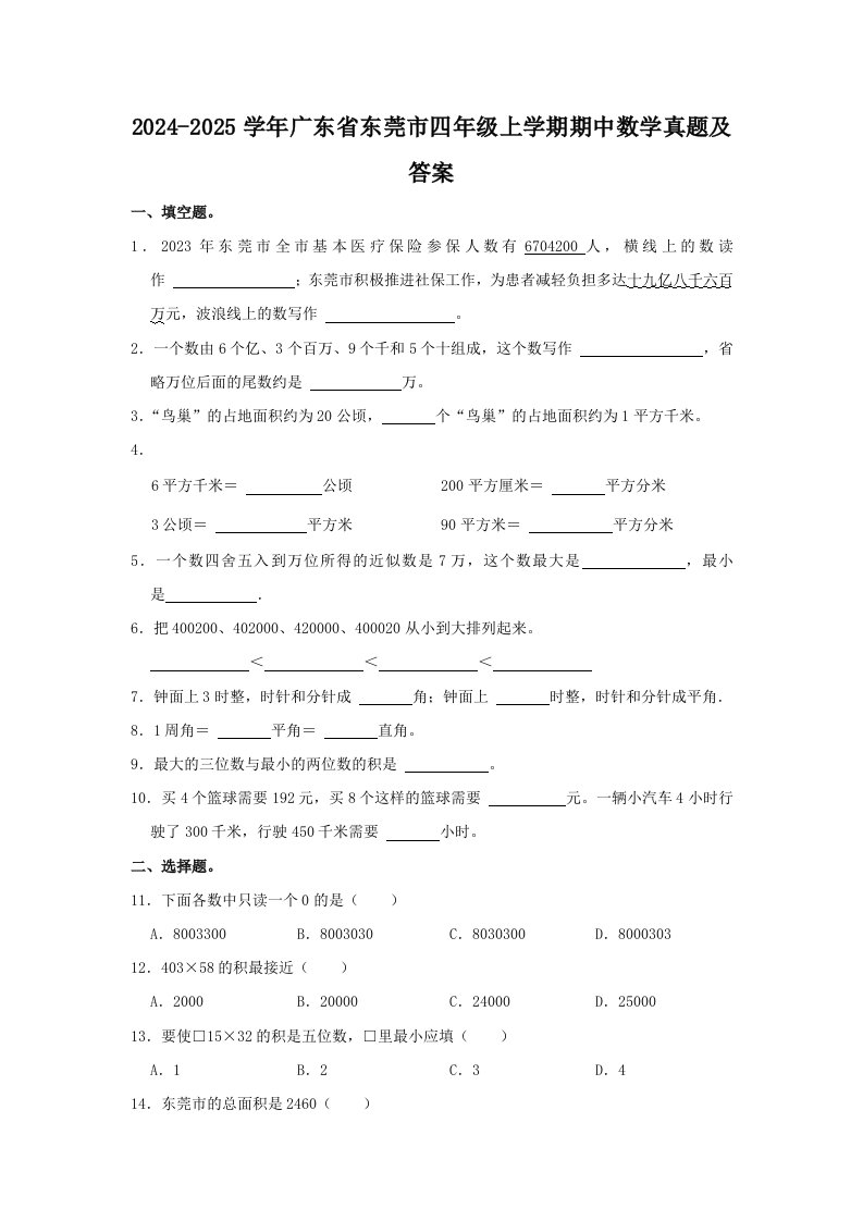 当前位置: 首页小学资源小学四年级正文 2024-2025学年广东省东莞市四年级上学期期中数学真题及答案(Word版)_共14页 小学四年级 1 周前 0 0 10 以上为部分内容预览,如需源文档请登录您的会员账号进行下载! 声明:本站所有文章,如无特殊说明或标注,均为本站原创发布。任何个人或组织,在未征得本站同意时,禁止复制、盗用、采集、发布本站内容到任何网站、书籍等各类媒体平台。如若本站内容侵犯了原著者的合法权益,可联系我们进行处理。 尚学资源永久会员 打赏 收藏 海报 链接