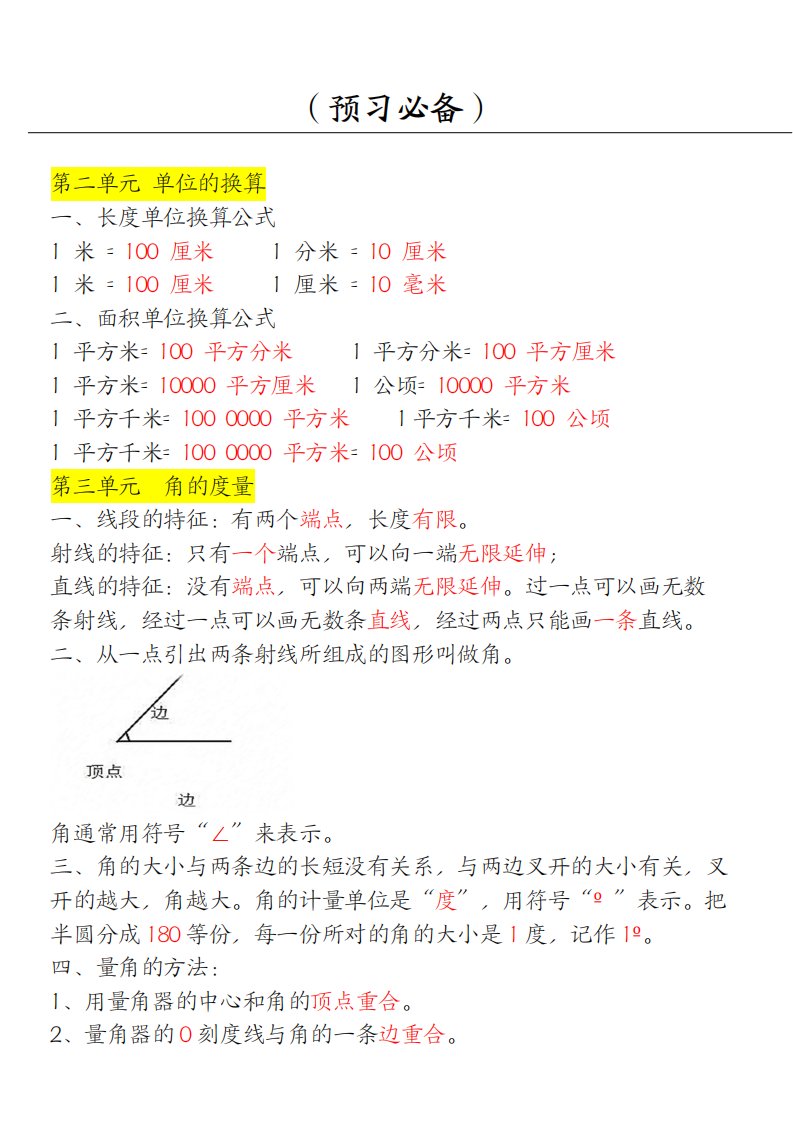 当前位置: 首页小学资源小学四年级正文 【四上】数学必背汇总_共9页 小学四年级 7 天前 0 0 5 以上为部分内容预览,如需源文档请登录您的会员账号进行下载! 声明:本站所有文章,如无特殊说明或标注,均为本站原创发布。任何个人或组织,在未征得本站同意时,禁止复制、盗用、采集、发布本站内容到任何网站、书籍等各类媒体平台。如若本站内容侵犯了原著者的合法权益,可联系我们进行处理。 尚学资源永久会员 打赏 收藏 海报 链接
