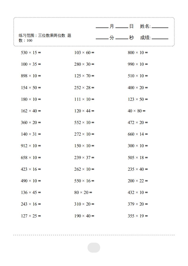 四年级数学上册每日晚练学习单_共4页