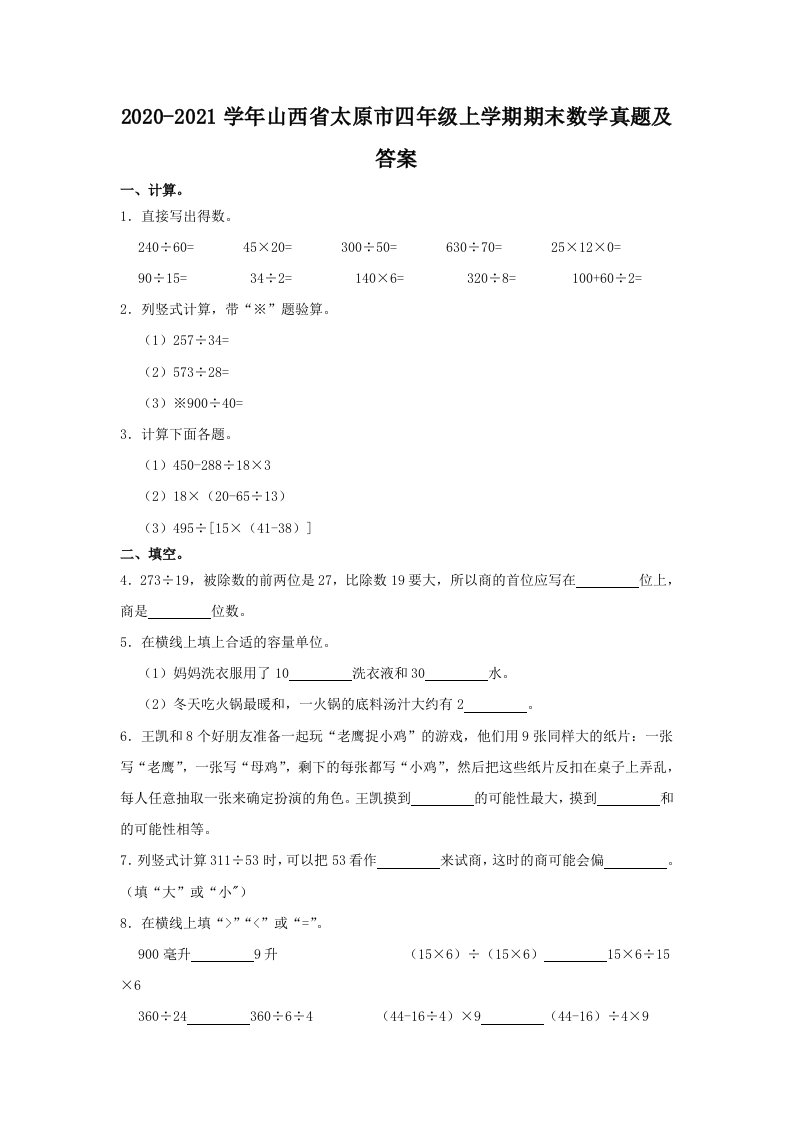 当前位置: 首页小学资源小学四年级正文 2020-2021学年山西省太原市四年级上学期期末数学真题及答案(Word版)_共13页 小学四年级 1 周前 0 0 10 以上为部分内容预览,如需源文档请登录您的会员账号进行下载! 声明:本站所有文章,如无特殊说明或标注,均为本站原创发布。任何个人或组织,在未征得本站同意时,禁止复制、盗用、采集、发布本站内容到任何网站、书籍等各类媒体平台。如若本站内容侵犯了原著者的合法权益,可联系我们进行处理。 尚学资源永久会员 打赏 收藏 海报 链接