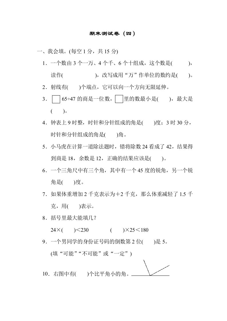 四年级数学上册期末练习(3)(北师大版)_共9页