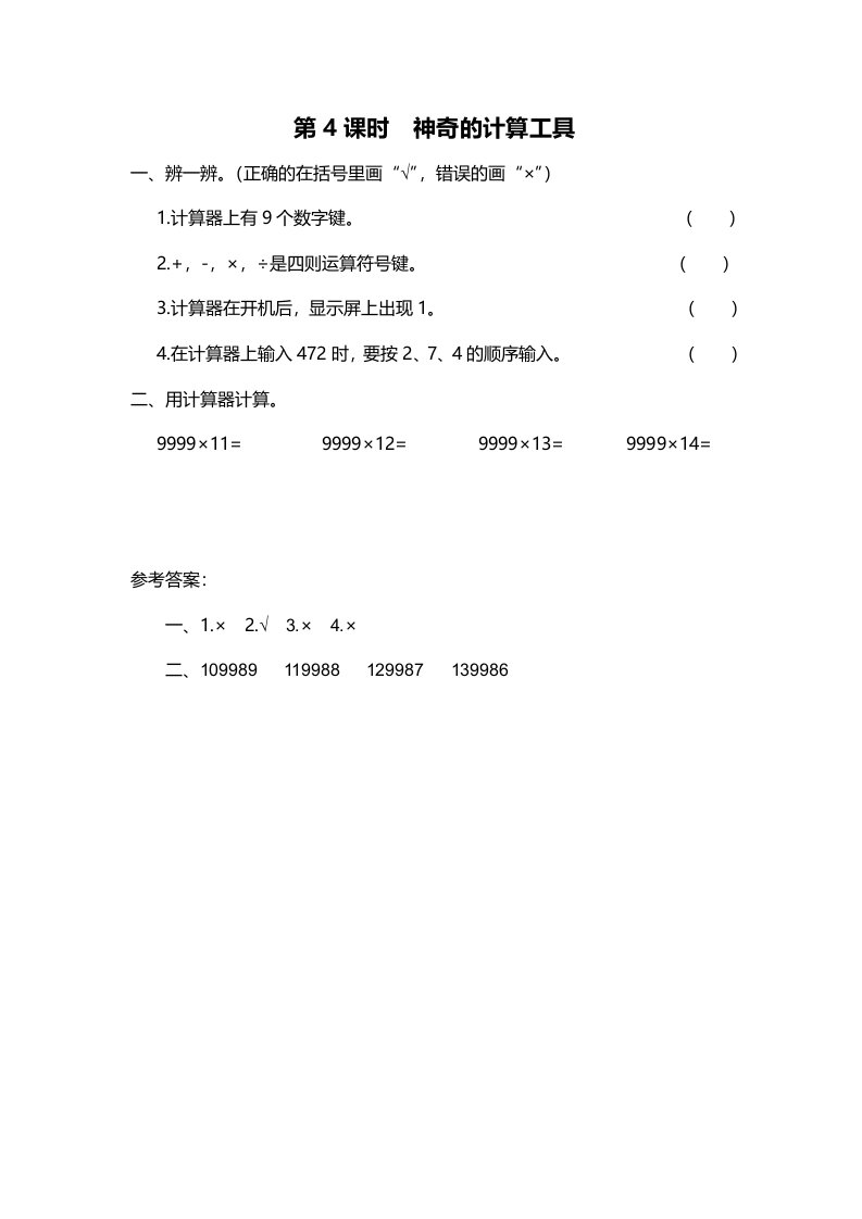 四年级数学上册第4课时神奇的计算工具(北师大版)_共1页