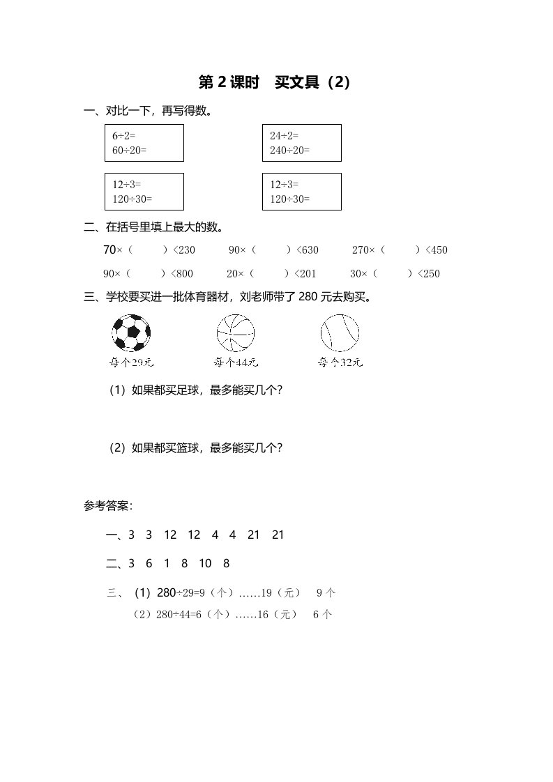 四年级数学上册第2课时买文具(2)(北师大版)_共1页