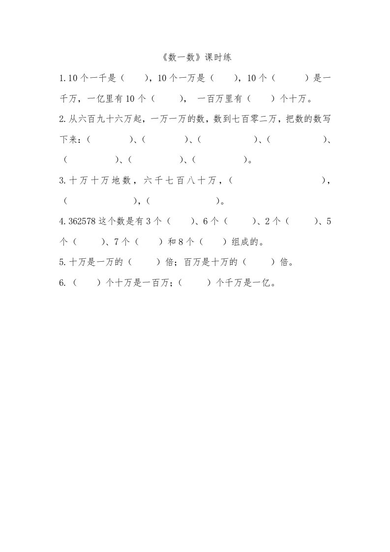 四年级数学上册1.1数一数(北师大版)_共2页