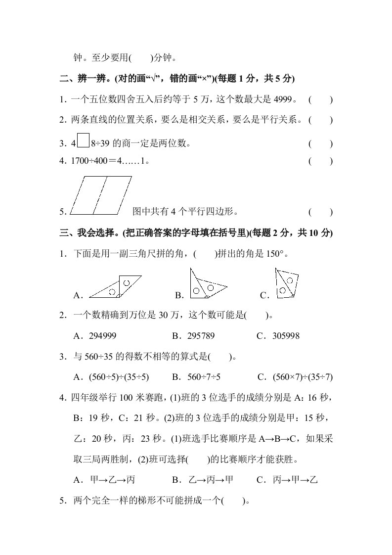 当前位置: 首页小学资源小学四年级正文 四年级数学上册四年级第一学期数学期末测试卷(人教版)_共8页 小学四年级 7 天前 0 0 5 以上为部分内容预览,如需源文档请登录您的会员账号进行下载! 声明:本站所有文章,如无特殊说明或标注,均为本站原创发布。任何个人或组织,在未征得本站同意时,禁止复制、盗用、采集、发布本站内容到任何网站、书籍等各类媒体平台。如若本站内容侵犯了原著者的合法权益,可联系我们进行处理。 尚学资源永久会员 打赏 收藏 海报 链接