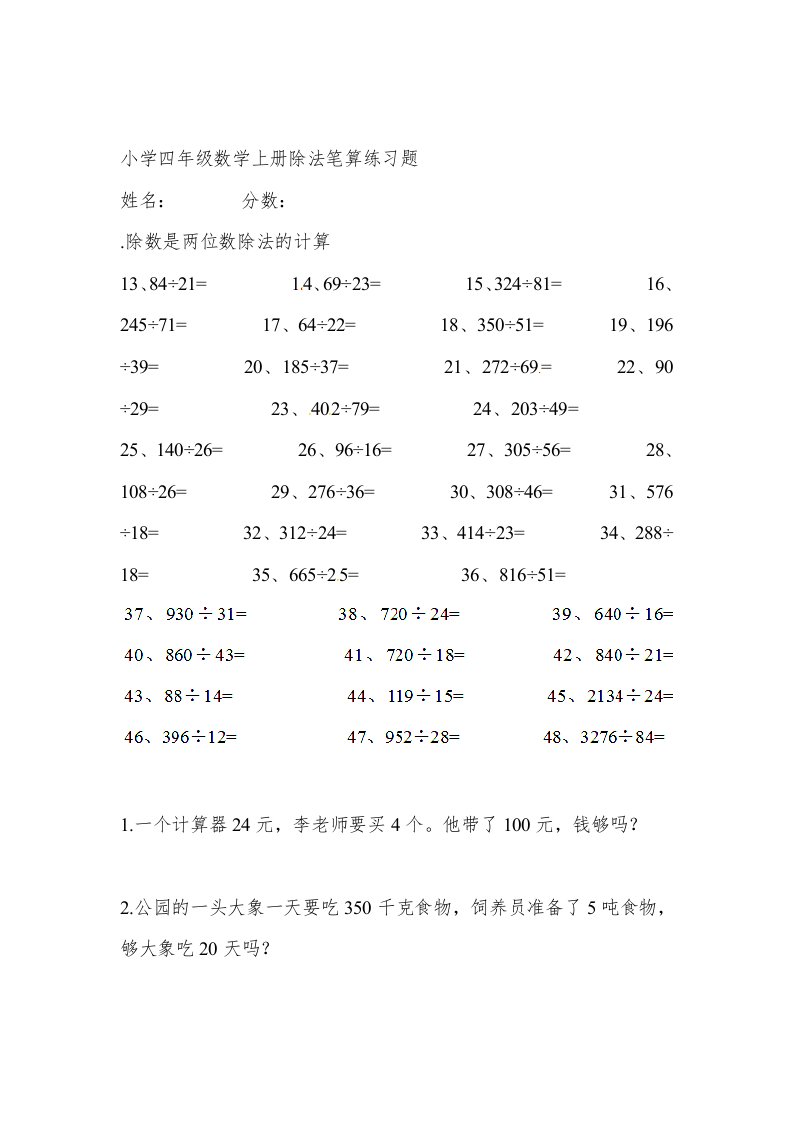 四年级数学上册除数是两位数的除法笔算除法5(人教版)_共2页