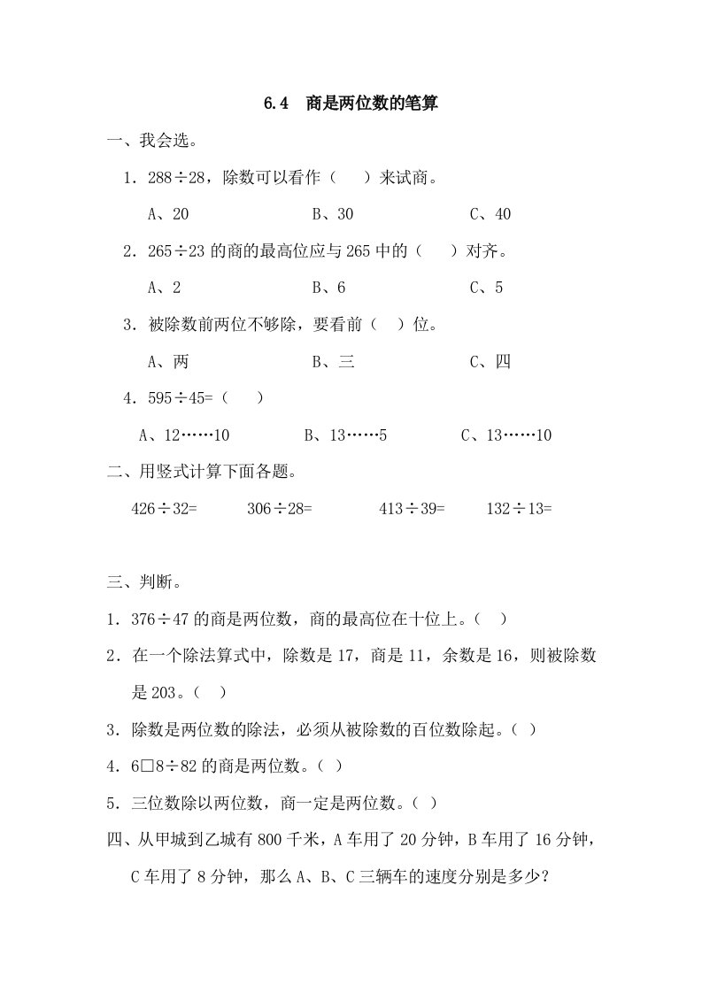当前位置: 首页小学资源小学四年级正文 四年级数学上册6.4商是两位数的笔算_20190728_211008(人教版)_共2页 小学四年级 1 周前 0 0 5 以上为部分内容预览,如需源文档请登录您的会员账号进行下载! 声明:本站所有文章,如无特殊说明或标注,均为本站原创发布。任何个人或组织,在未征得本站同意时,禁止复制、盗用、采集、发布本站内容到任何网站、书籍等各类媒体平台。如若本站内容侵犯了原著者的合法权益,可联系我们进行处理。 尚学资源永久会员 打赏 收藏 海报 链接