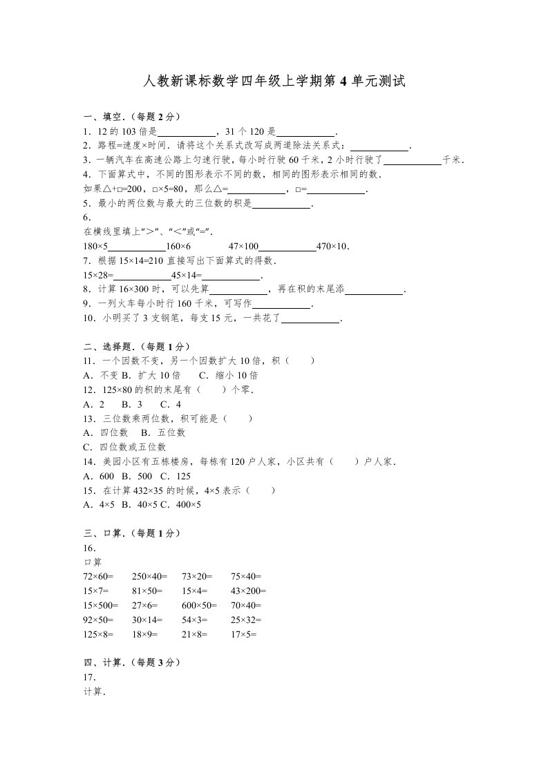 当前位置: 首页小学资源小学四年级正文 四年级数学上册第4单元测试卷1(人教版)_共15页 小学四年级 7 天前 0 0 10 以上为部分内容预览,如需源文档请登录您的会员账号进行下载! 声明:本站所有文章,如无特殊说明或标注,均为本站原创发布。任何个人或组织,在未征得本站同意时,禁止复制、盗用、采集、发布本站内容到任何网站、书籍等各类媒体平台。如若本站内容侵犯了原著者的合法权益,可联系我们进行处理。 尚学资源永久会员 打赏 收藏 海报 链接