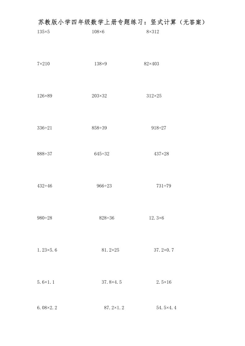 当前位置: 首页小学资源小学四年级正文 四年级数学上册专题练习:竖式计算(无答案)(苏教版)_共8页 小学四年级 1 周前 0 0 5 以上为部分内容预览,如需源文档请登录您的会员账号进行下载! 声明:本站所有文章,如无特殊说明或标注,均为本站原创发布。任何个人或组织,在未征得本站同意时,禁止复制、盗用、采集、发布本站内容到任何网站、书籍等各类媒体平台。如若本站内容侵犯了原著者的合法权益,可联系我们进行处理。 尚学资源永久会员 打赏 收藏 海报 链接