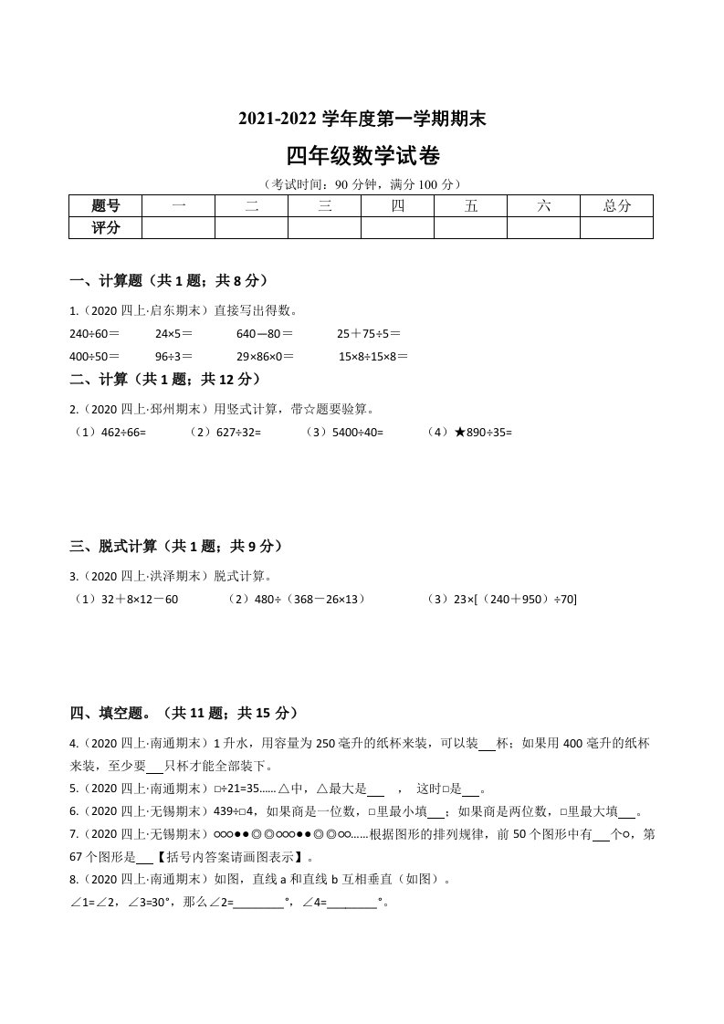 当前位置: 首页小学资源小学四年级正文 四年级数学上册省期末历年真题汇编卷C【试卷+答案】(苏教版)_共8页 小学四年级 7 天前 0 0 5 以上为部分内容预览,如需源文档请登录您的会员账号进行下载! 声明:本站所有文章,如无特殊说明或标注,均为本站原创发布。任何个人或组织,在未征得本站同意时,禁止复制、盗用、采集、发布本站内容到任何网站、书籍等各类媒体平台。如若本站内容侵犯了原著者的合法权益,可联系我们进行处理。 尚学资源永久会员 打赏 收藏 海报 链接