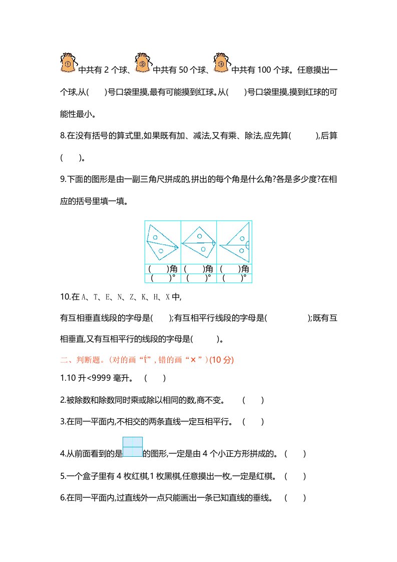 当前位置: 首页小学资源小学四年级正文 四年级数学上册期末测试卷1(苏教版)_共9页 小学四年级 7 天前 0 0 5 以上为部分内容预览,如需源文档请登录您的会员账号进行下载! 声明:本站所有文章,如无特殊说明或标注,均为本站原创发布。任何个人或组织,在未征得本站同意时,禁止复制、盗用、采集、发布本站内容到任何网站、书籍等各类媒体平台。如若本站内容侵犯了原著者的合法权益,可联系我们进行处理。 尚学资源永久会员 打赏 收藏 海报 链接