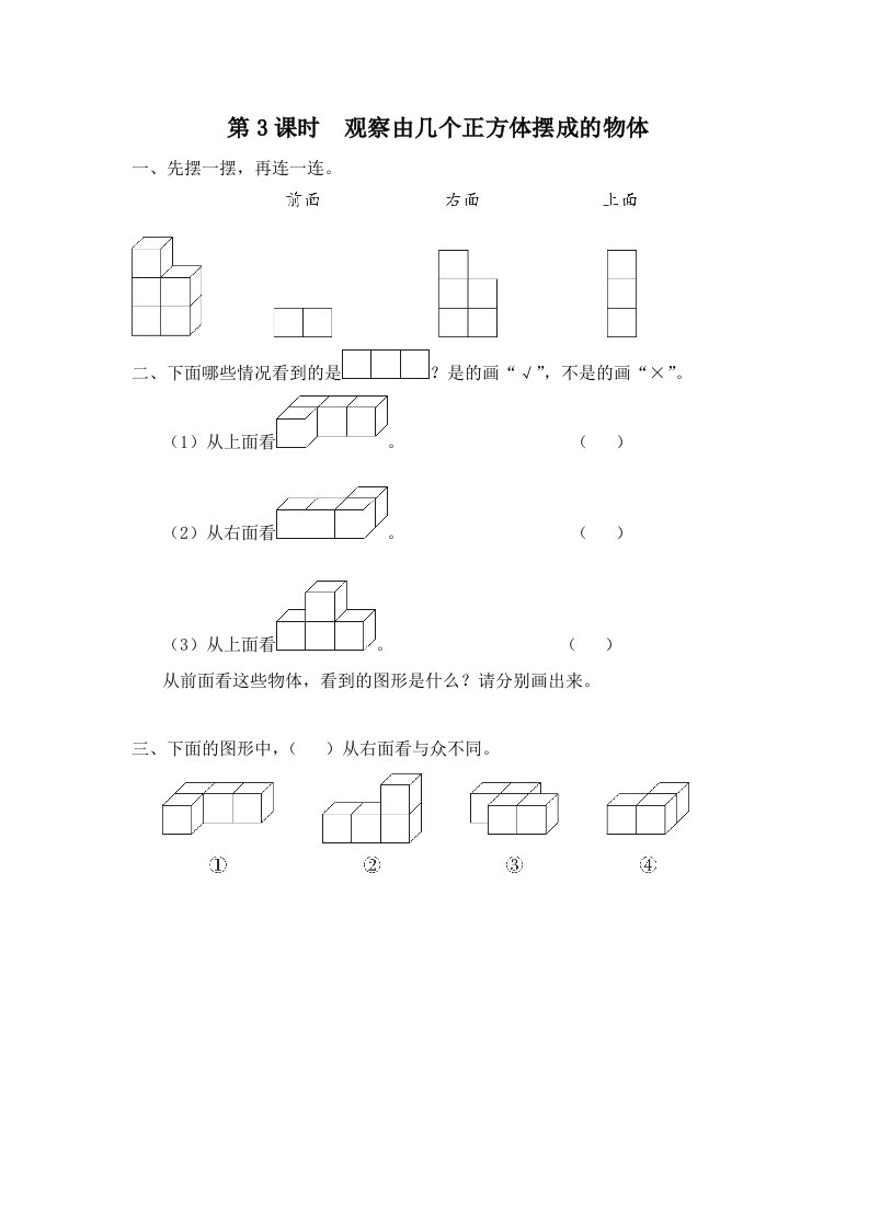 当前位置: 首页小学资源小学四年级正文 四年级数学上册第3课时观察由几个正方体摆成的物体(苏教版)_共2页 小学四年级 1 周前 0 0 5 以上为部分内容预览,如需源文档请登录您的会员账号进行下载! 声明:本站所有文章,如无特殊说明或标注,均为本站原创发布。任何个人或组织,在未征得本站同意时,禁止复制、盗用、采集、发布本站内容到任何网站、书籍等各类媒体平台。如若本站内容侵犯了原著者的合法权益,可联系我们进行处理。 尚学资源永久会员 打赏 收藏 海报 链接