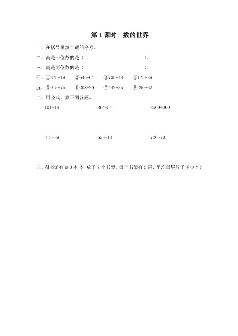 四年级数学上册第1课时数的世界(苏教版)_共2页