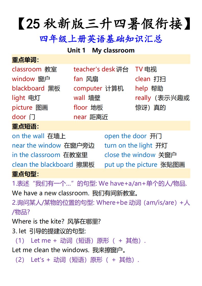 【2025秋新版】四年级上册英语基础知识汇总_共7页
