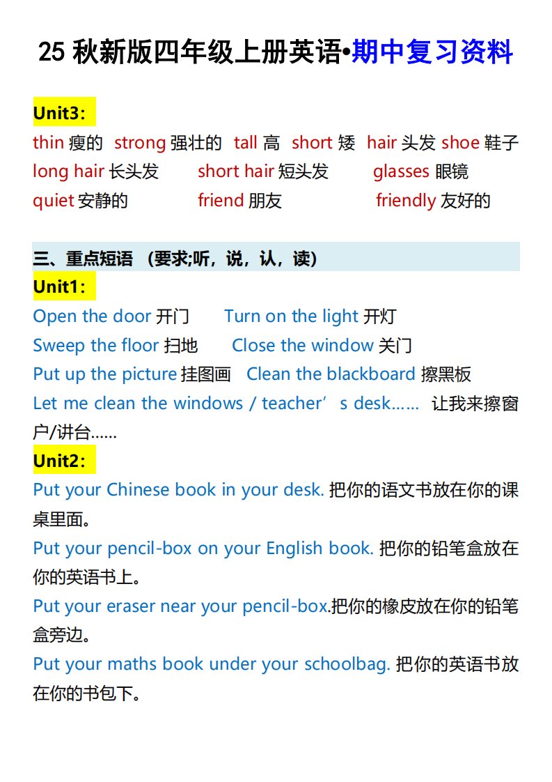 当前位置: 首页小学资源小学四年级正文 【2025秋新版】四年级上册英语•期中复习资料_共5页 小学四年级 1 周前 0 0 5 以上为部分内容预览,如需源文档请登录您的会员账号进行下载! 声明:本站所有文章,如无特殊说明或标注,均为本站原创发布。任何个人或组织,在未征得本站同意时,禁止复制、盗用、采集、发布本站内容到任何网站、书籍等各类媒体平台。如若本站内容侵犯了原著者的合法权益,可联系我们进行处理。 尚学资源永久会员 打赏 收藏 海报 链接