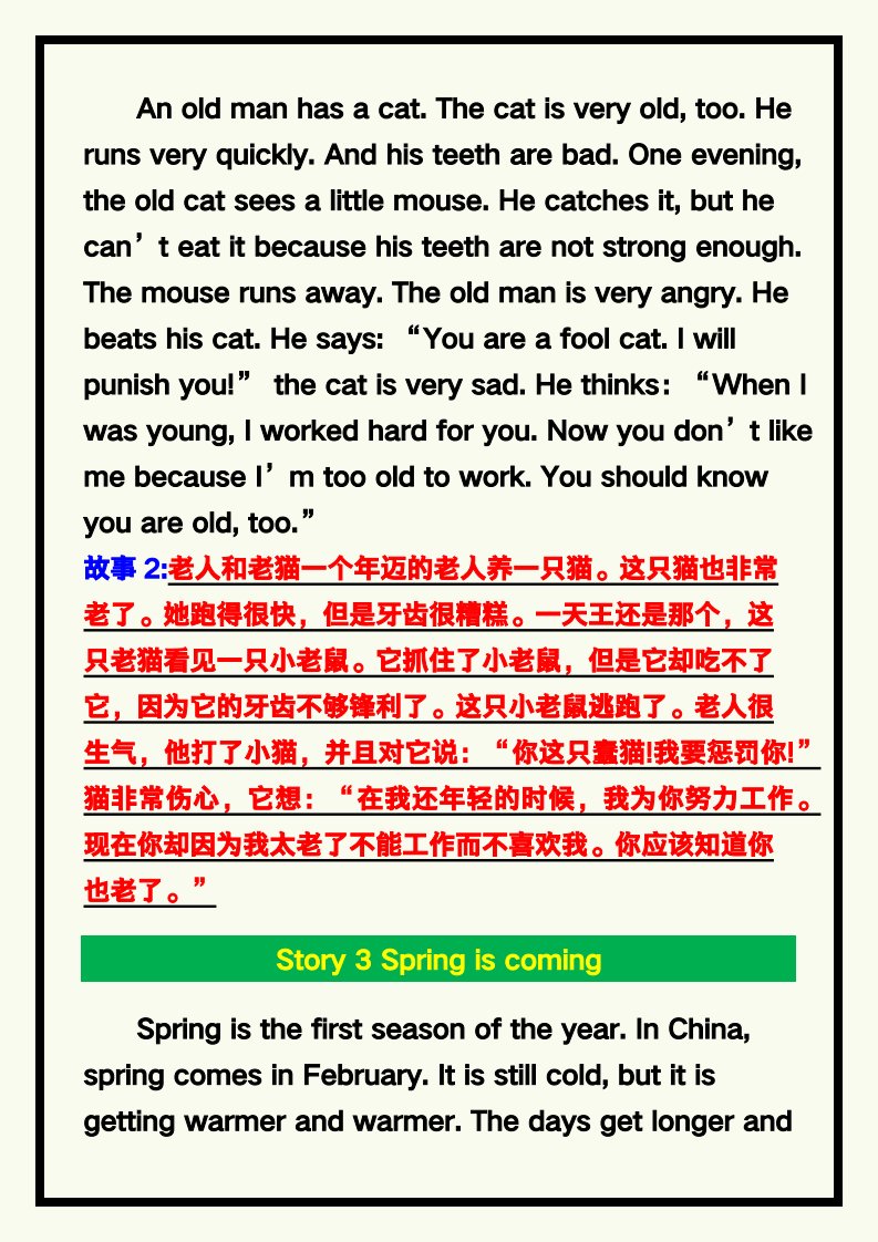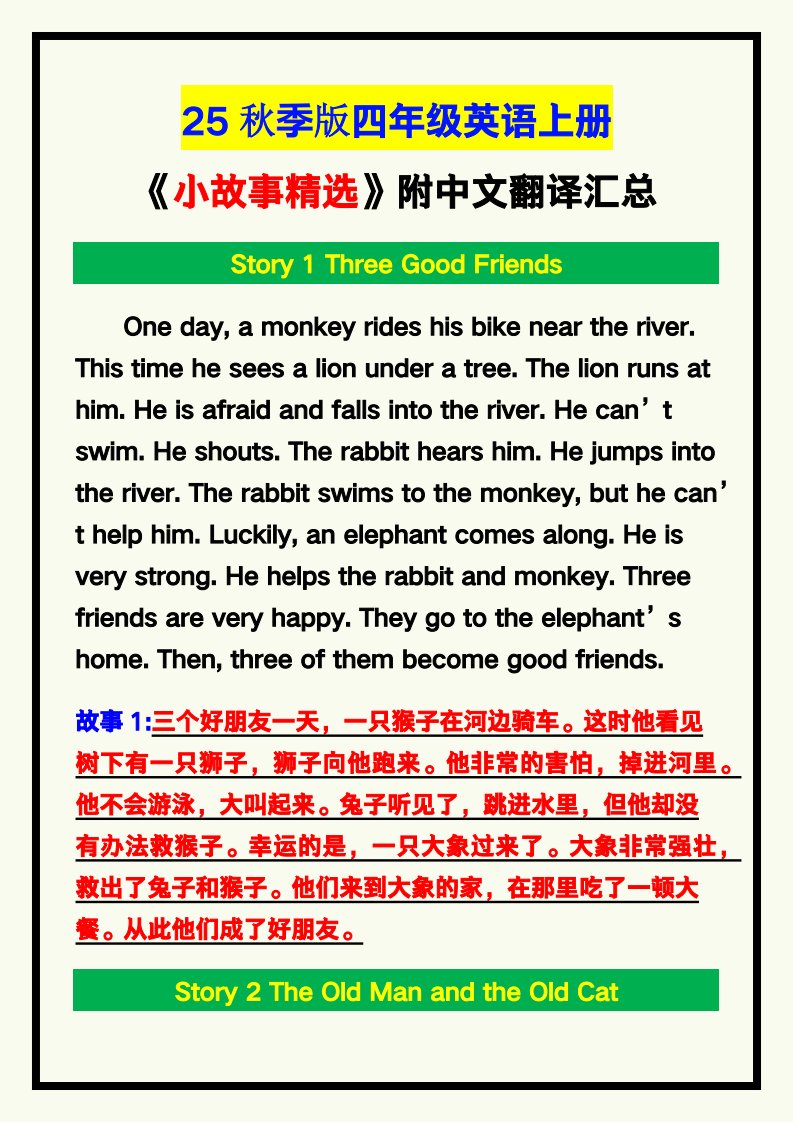 【2025秋新版】四年级英语上册《小故事精选》附中文翻译!_共6页