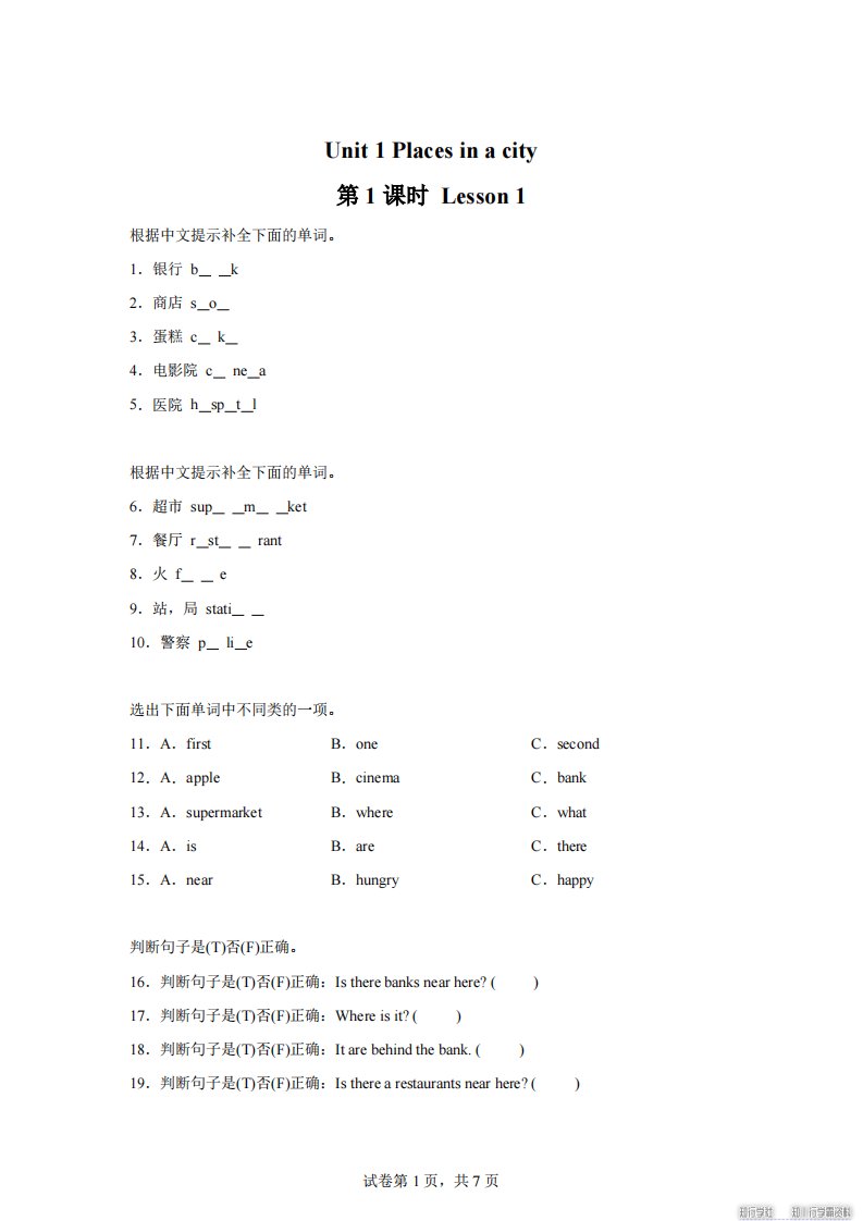 2025-2026学年英语人教大同版(2024)四年级上册Unit1Lesson1(分层作业)_共14页