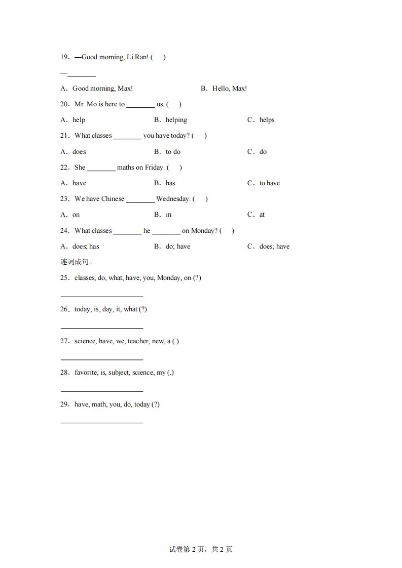 2025-2026学年北师大版(2024)英语四年级上册Unit1BacktoschoolLesson2基础练习(同步练)_共5页