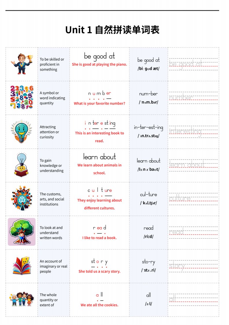 2025年秋译林版四上英语Unit1自然拼读单词表_共2页