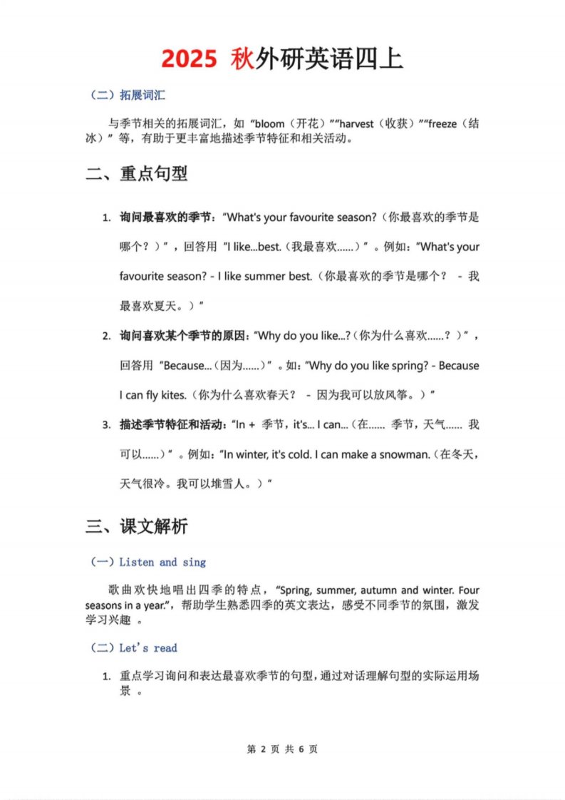 当前位置: 首页小学资源小学四年级正文 2025秋外研英语四上课堂笔记Unit_4_共6页 小学四年级 1 周前 0 0 5 以上为部分内容预览,如需源文档请登录您的会员账号进行下载! 声明:本站所有文章,如无特殊说明或标注,均为本站原创发布。任何个人或组织,在未征得本站同意时,禁止复制、盗用、采集、发布本站内容到任何网站、书籍等各类媒体平台。如若本站内容侵犯了原著者的合法权益,可联系我们进行处理。 尚学资源永久会员 打赏 收藏 海报 链接