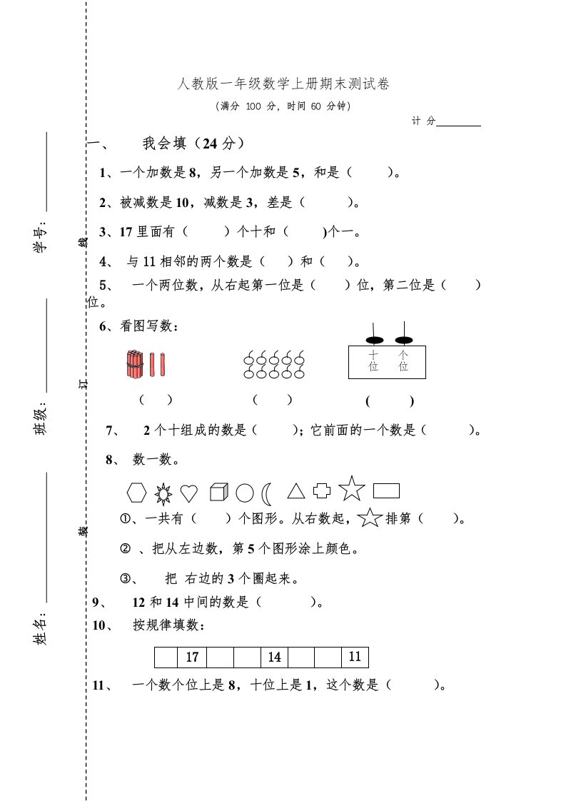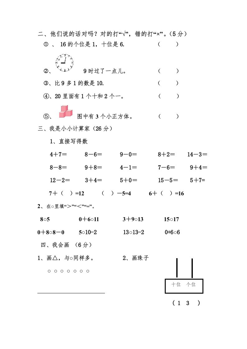 当前位置: 首页小学资源小学一年级正文 一年级数学上册期末测试卷4(人教版)_共5页 小学一年级 2 周前 0 0 5 以上为部分内容预览,如需源文档请登录您的会员账号进行下载! 声明:本站所有文章,如无特殊说明或标注,均为本站原创发布。任何个人或组织,在未征得本站同意时,禁止复制、盗用、采集、发布本站内容到任何网站、书籍等各类媒体平台。如若本站内容侵犯了原著者的合法权益,可联系我们进行处理。 尚学资源永久会员 打赏 收藏 海报 链接