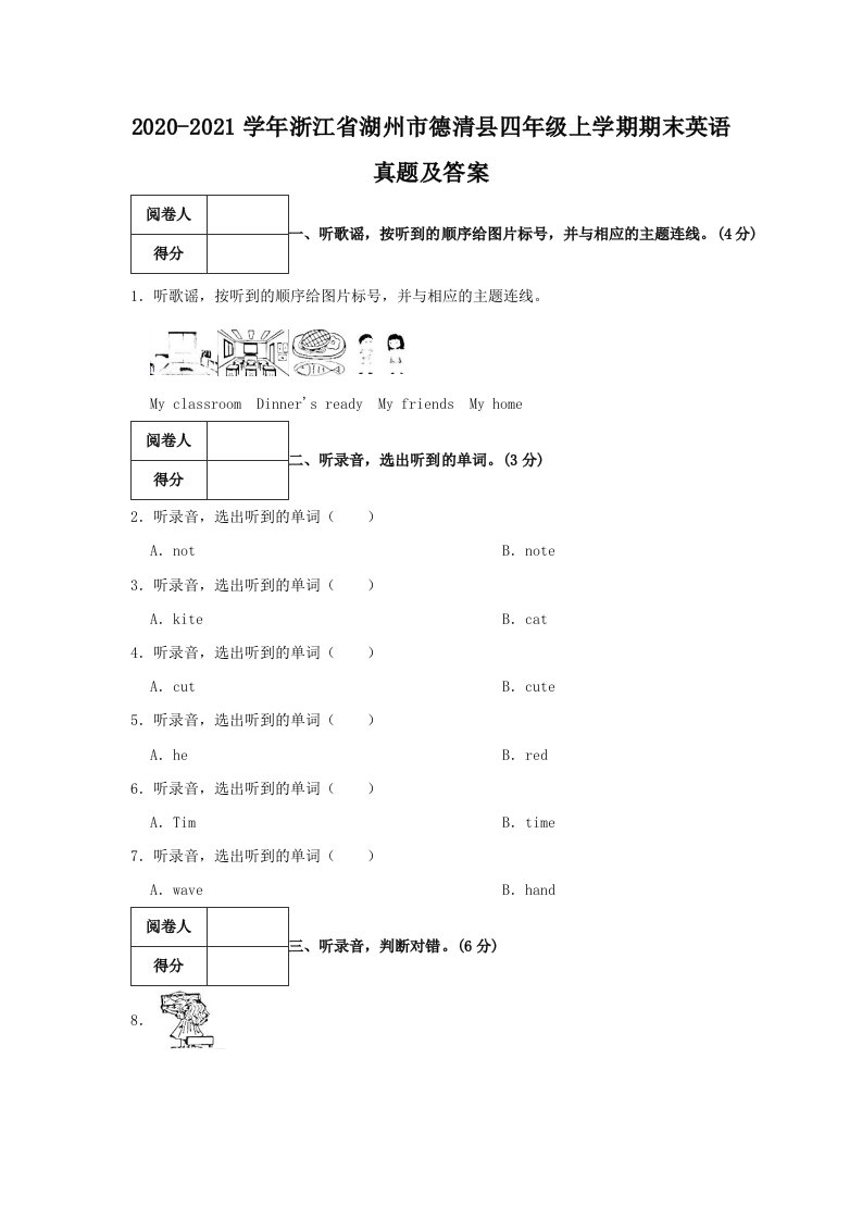 2020-2021学年浙江省湖州市德清县四年级上学期期末英语真题及答案(Word版)_共28页
