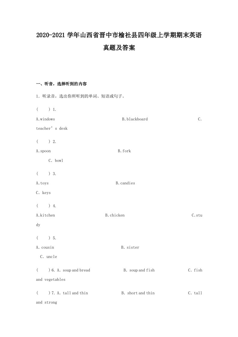 当前位置: 首页小学资源小学四年级正文 2020-2021学年山西省晋中市榆社县四年级上学期期末英语真题及答案(Word版)_共9页 小学四年级 1 周前 0 0 5 以上为部分内容预览,如需源文档请登录您的会员账号进行下载! 声明:本站所有文章,如无特殊说明或标注,均为本站原创发布。任何个人或组织,在未征得本站同意时,禁止复制、盗用、采集、发布本站内容到任何网站、书籍等各类媒体平台。如若本站内容侵犯了原著者的合法权益,可联系我们进行处理。 尚学资源永久会员 打赏 收藏 海报 链接
