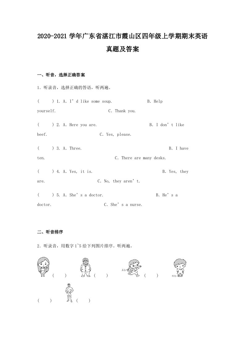 当前位置: 首页小学资源小学四年级正文 2020-2021学年广东省湛江市霞山区四年级上学期期末英语真题及答案(Word版)_共9页 小学四年级 7 天前 0 0 5 以上为部分内容预览,如需源文档请登录您的会员账号进行下载! 声明:本站所有文章,如无特殊说明或标注,均为本站原创发布。任何个人或组织,在未征得本站同意时,禁止复制、盗用、采集、发布本站内容到任何网站、书籍等各类媒体平台。如若本站内容侵犯了原著者的合法权益,可联系我们进行处理。 尚学资源永久会员 打赏 收藏 海报 链接