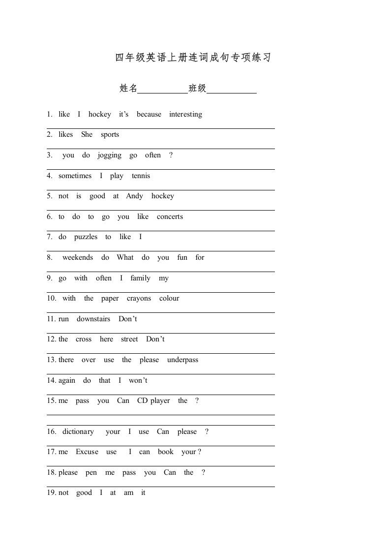 当前位置: 首页小学资源小学四年级正文 四年级英语上册连词成句专项练习(人教版一起点)_共2页 小学四年级 1 周前 0 0 5 以上为部分内容预览,如需源文档请登录您的会员账号进行下载! 声明:本站所有文章,如无特殊说明或标注,均为本站原创发布。任何个人或组织,在未征得本站同意时,禁止复制、盗用、采集、发布本站内容到任何网站、书籍等各类媒体平台。如若本站内容侵犯了原著者的合法权益,可联系我们进行处理。 尚学资源永久会员 打赏 收藏 海报 链接