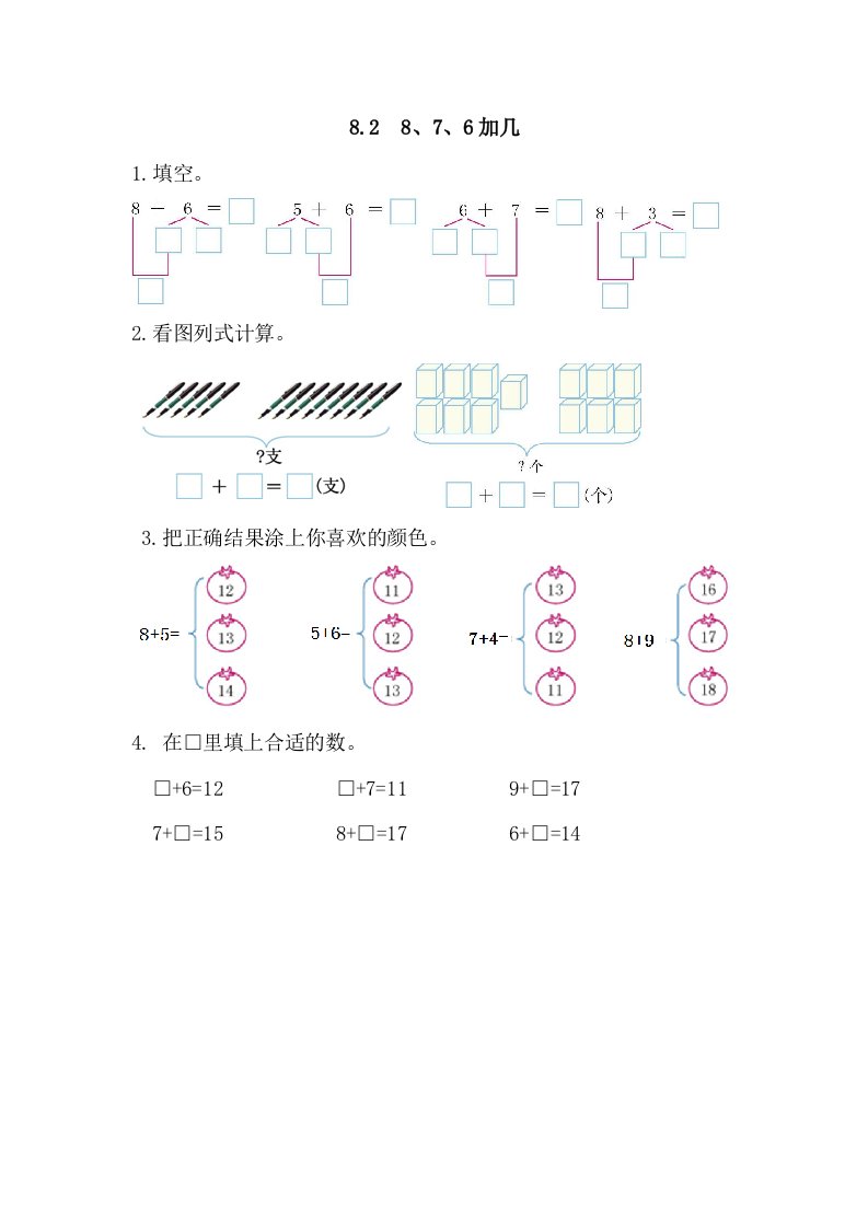 当前位置: 首页小学资源小学一年级正文 一年级数学上册8.28、7、6加几(人教版)_共2页 小学一年级 2 周前 0 0 5 以上为部分内容预览,如需源文档请登录您的会员账号进行下载! 声明:本站所有文章,如无特殊说明或标注,均为本站原创发布。任何个人或组织,在未征得本站同意时,禁止复制、盗用、采集、发布本站内容到任何网站、书籍等各类媒体平台。如若本站内容侵犯了原著者的合法权益,可联系我们进行处理。 尚学资源永久会员 打赏 收藏 海报 链接