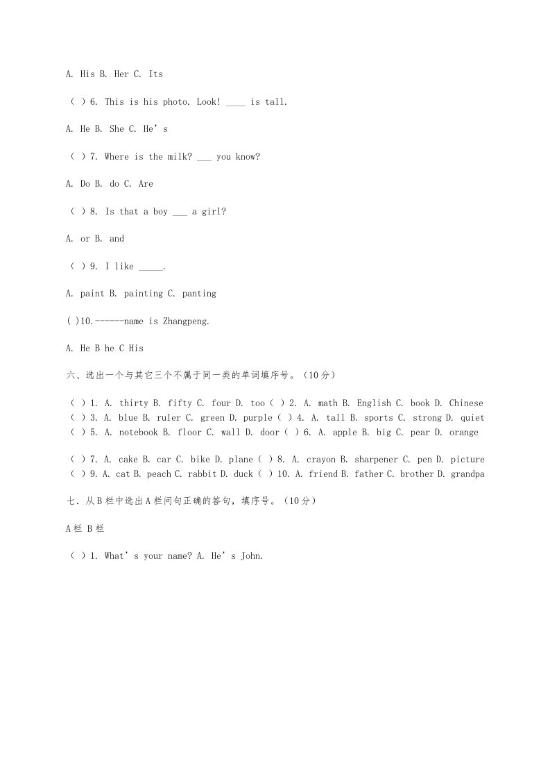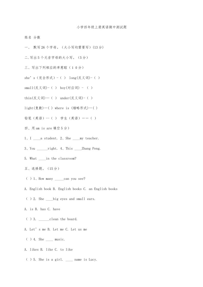 当前位置: 首页小学资源小学四年级正文 四年级英语上册期中测试题(1)(人教版一起点)_共3页 小学四年级 7 天前 0 0 5 以上为部分内容预览,如需源文档请登录您的会员账号进行下载! 声明:本站所有文章,如无特殊说明或标注,均为本站原创发布。任何个人或组织,在未征得本站同意时,禁止复制、盗用、采集、发布本站内容到任何网站、书籍等各类媒体平台。如若本站内容侵犯了原著者的合法权益,可联系我们进行处理。 尚学资源永久会员 打赏 收藏 海报 链接