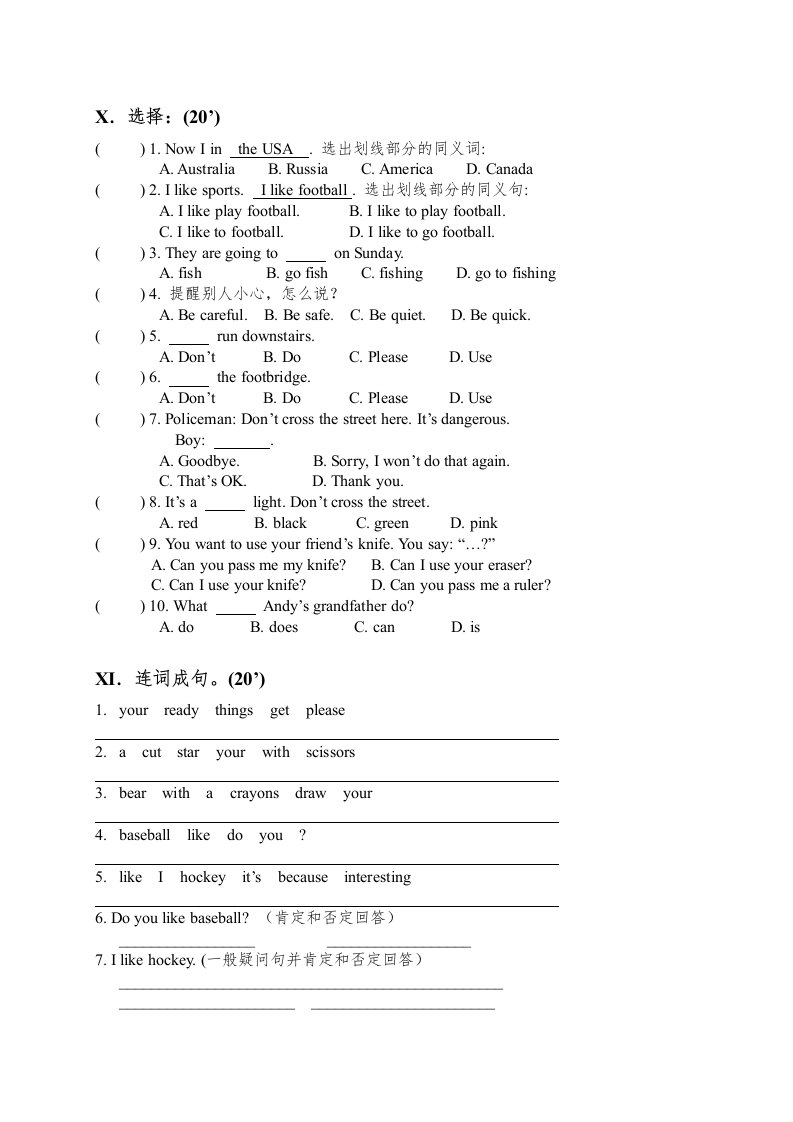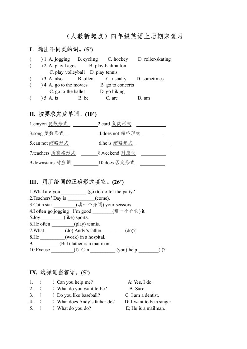 四年级英语上册期末复习(人教版一起点)_共3页