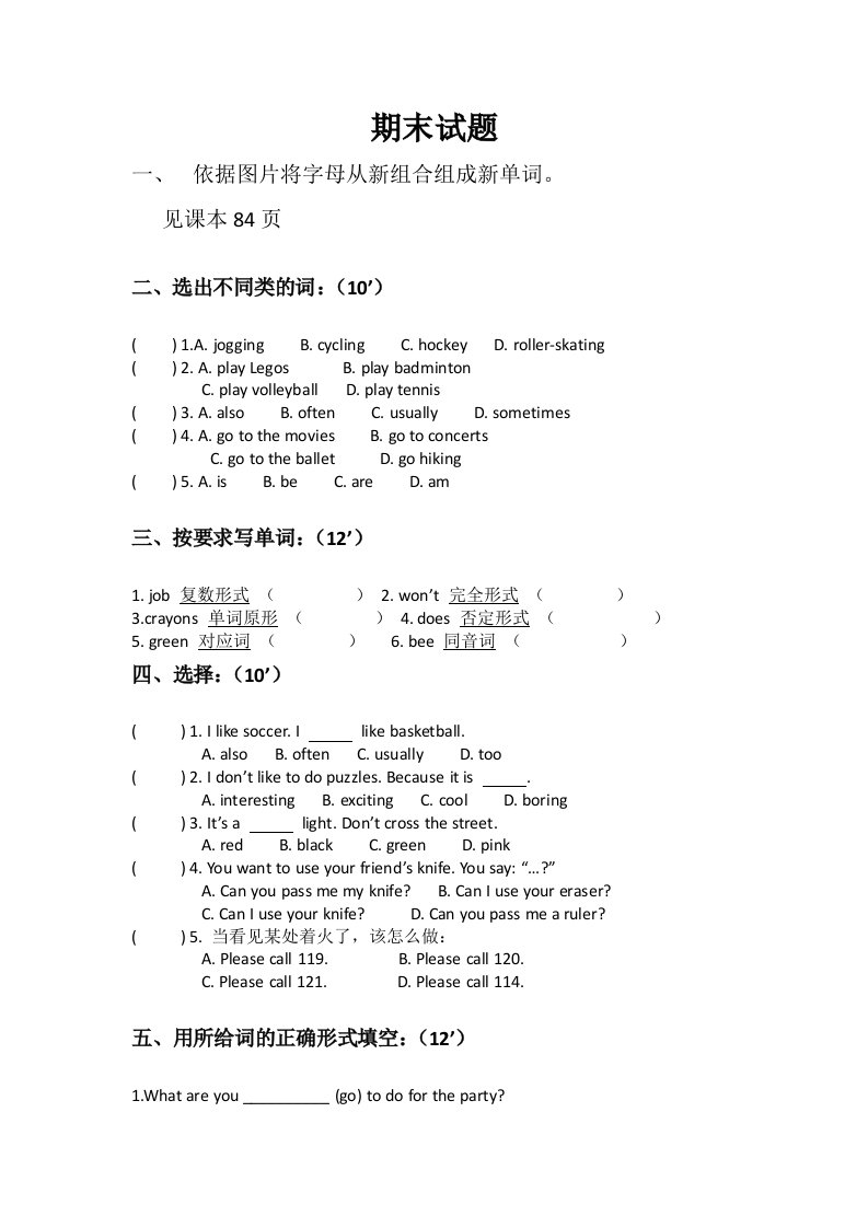当前位置: 首页小学资源小学四年级正文 四年级英语上册期末测试题(人教版一起点)_共3页 小学四年级 7 天前 0 0 5 以上为部分内容预览,如需源文档请登录您的会员账号进行下载! 声明:本站所有文章,如无特殊说明或标注,均为本站原创发布。任何个人或组织,在未征得本站同意时,禁止复制、盗用、采集、发布本站内容到任何网站、书籍等各类媒体平台。如若本站内容侵犯了原著者的合法权益,可联系我们进行处理。 尚学资源永久会员 打赏 收藏 海报 链接