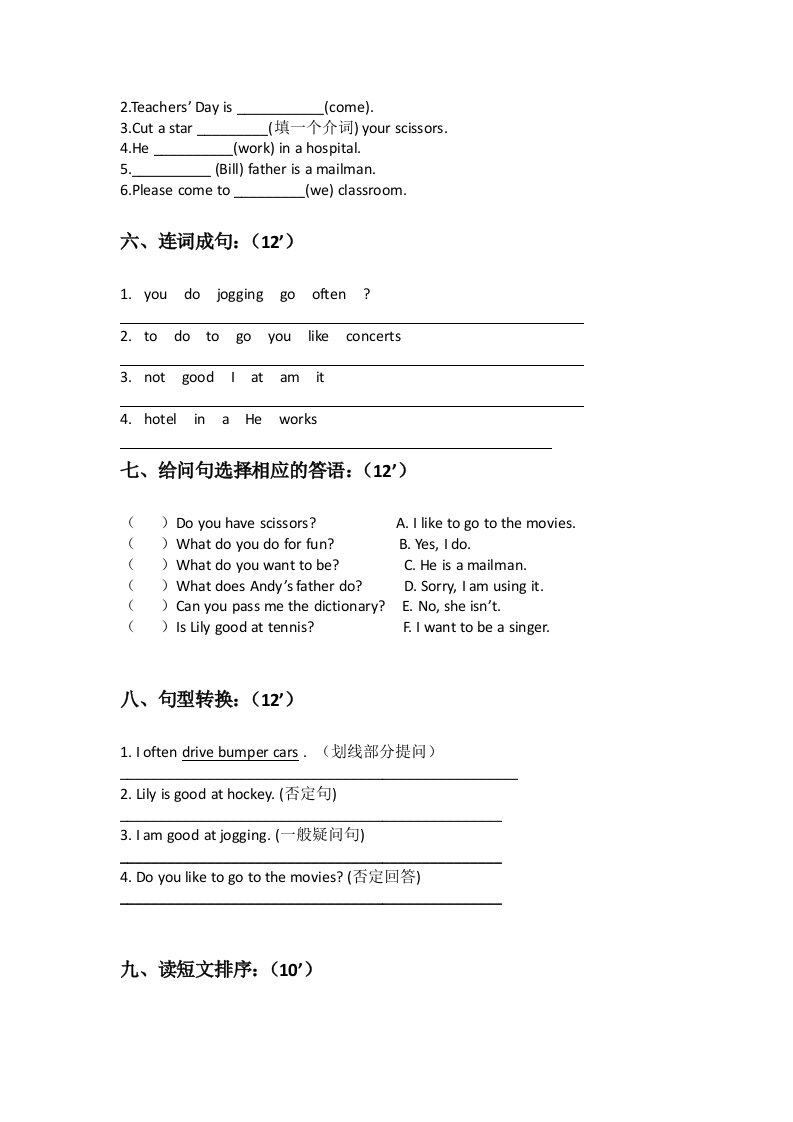 当前位置: 首页小学资源小学四年级正文 四年级英语上册期末测试卷(1)(人教版一起点)_共3页 小学四年级 7 天前 0 0 5 以上为部分内容预览,如需源文档请登录您的会员账号进行下载! 声明:本站所有文章,如无特殊说明或标注,均为本站原创发布。任何个人或组织,在未征得本站同意时,禁止复制、盗用、采集、发布本站内容到任何网站、书籍等各类媒体平台。如若本站内容侵犯了原著者的合法权益,可联系我们进行处理。 尚学资源永久会员 打赏 收藏 海报 链接