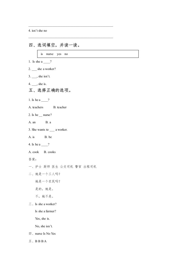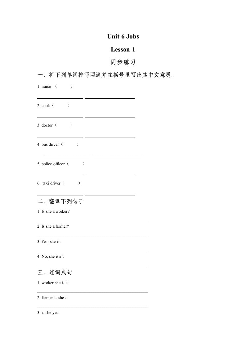 四年级英语上册Unit6JobsLesson1同步练习2(人教版一起点)_共3页