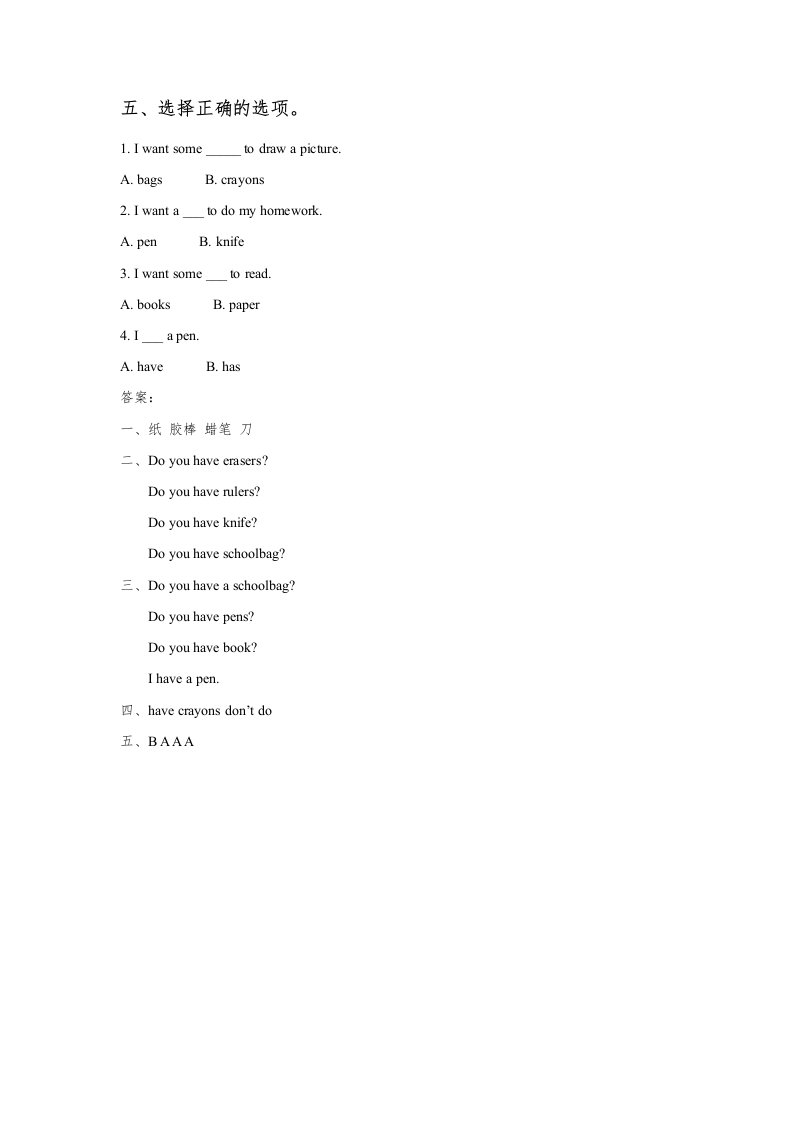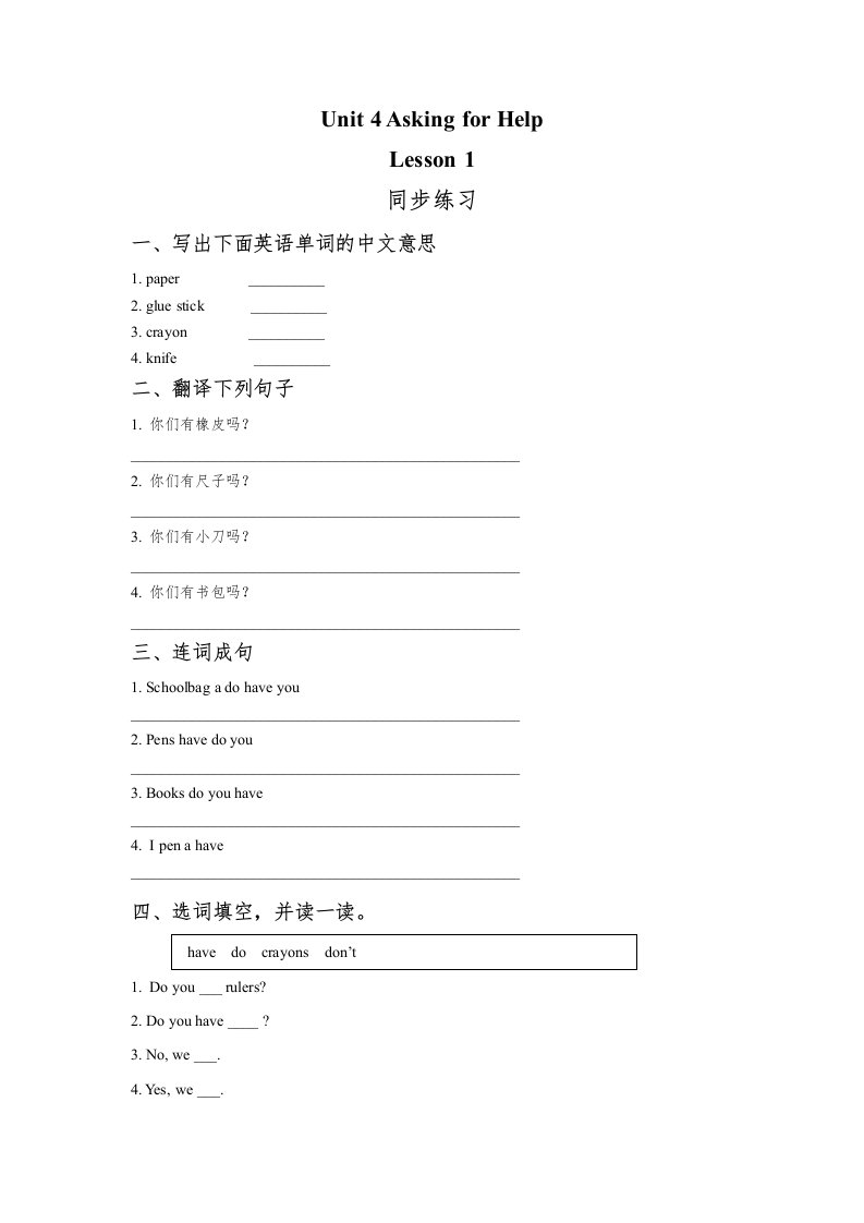 四年级英语上册Unit4AskingforHelpLesson1同步练习1(人教版一起点)_共2页