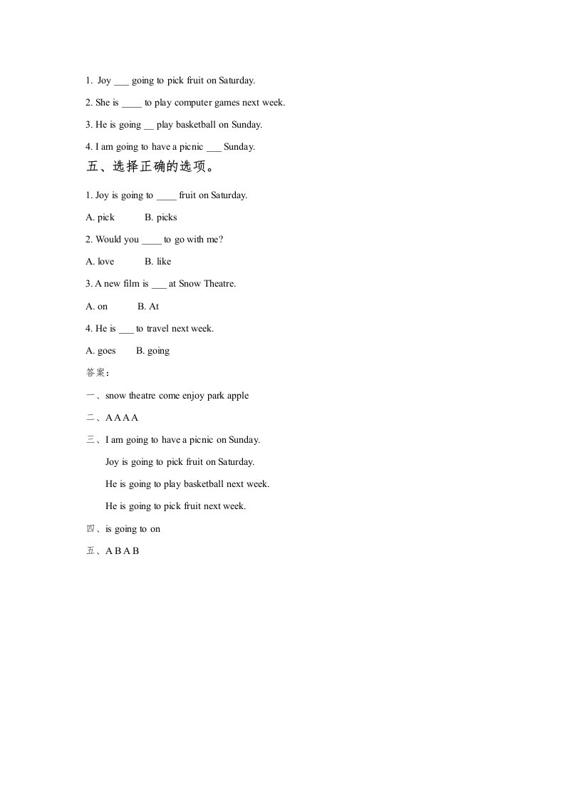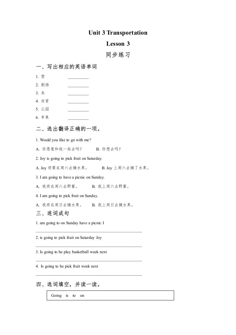 当前位置: 首页小学资源小学四年级正文 四年级英语上册Unit3TransportationLesson3同步练习2(人教版一起点)_共2页 小学四年级 1 周前 0 0 5 以上为部分内容预览,如需源文档请登录您的会员账号进行下载! 声明:本站所有文章,如无特殊说明或标注,均为本站原创发布。任何个人或组织,在未征得本站同意时,禁止复制、盗用、采集、发布本站内容到任何网站、书籍等各类媒体平台。如若本站内容侵犯了原著者的合法权益,可联系我们进行处理。 尚学资源永久会员 打赏 收藏 海报 链接