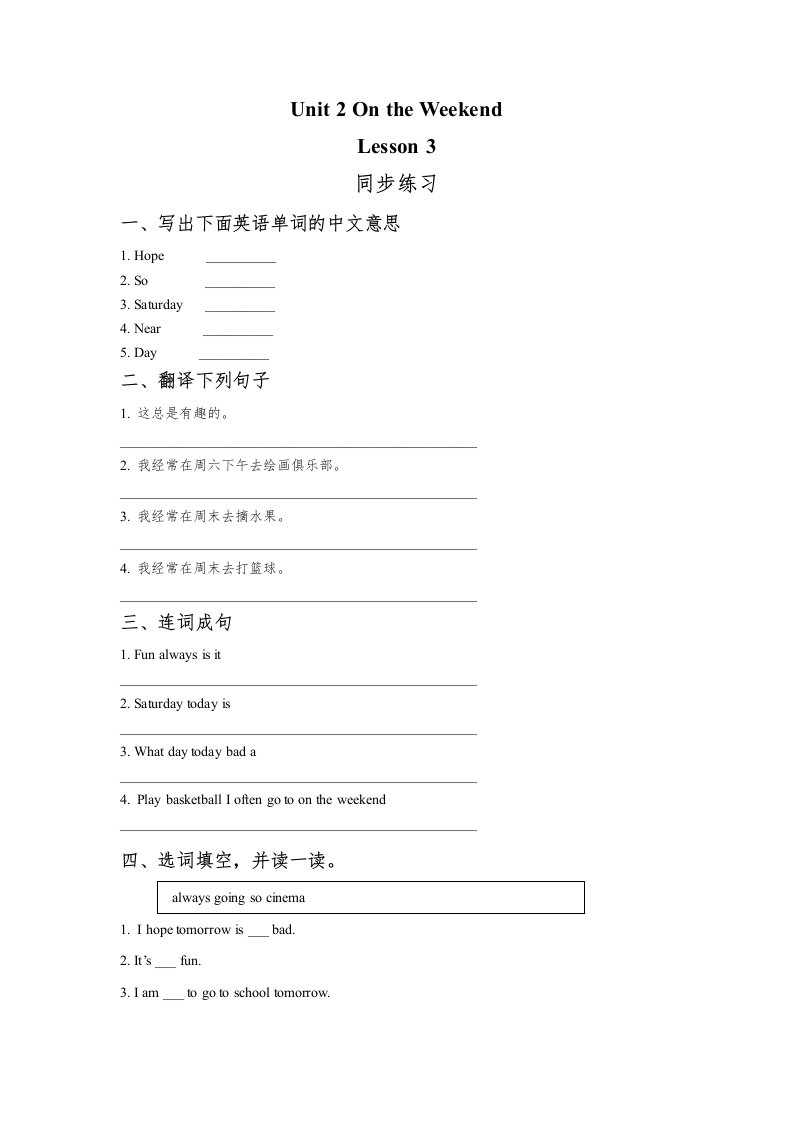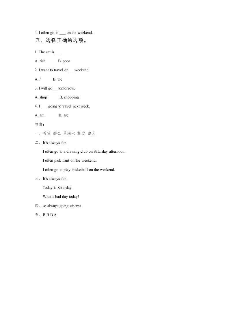 当前位置: 首页小学资源小学四年级正文 四年级英语上册Unit2OntheWeekendLesson3同步练习3(人教版一起点)_共2页 小学四年级 1 周前 0 0 5 以上为部分内容预览,如需源文档请登录您的会员账号进行下载! 声明:本站所有文章,如无特殊说明或标注,均为本站原创发布。任何个人或组织,在未征得本站同意时,禁止复制、盗用、采集、发布本站内容到任何网站、书籍等各类媒体平台。如若本站内容侵犯了原著者的合法权益,可联系我们进行处理。 尚学资源永久会员 打赏 收藏 海报 链接