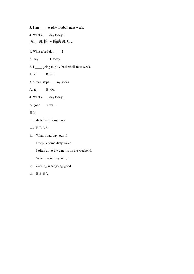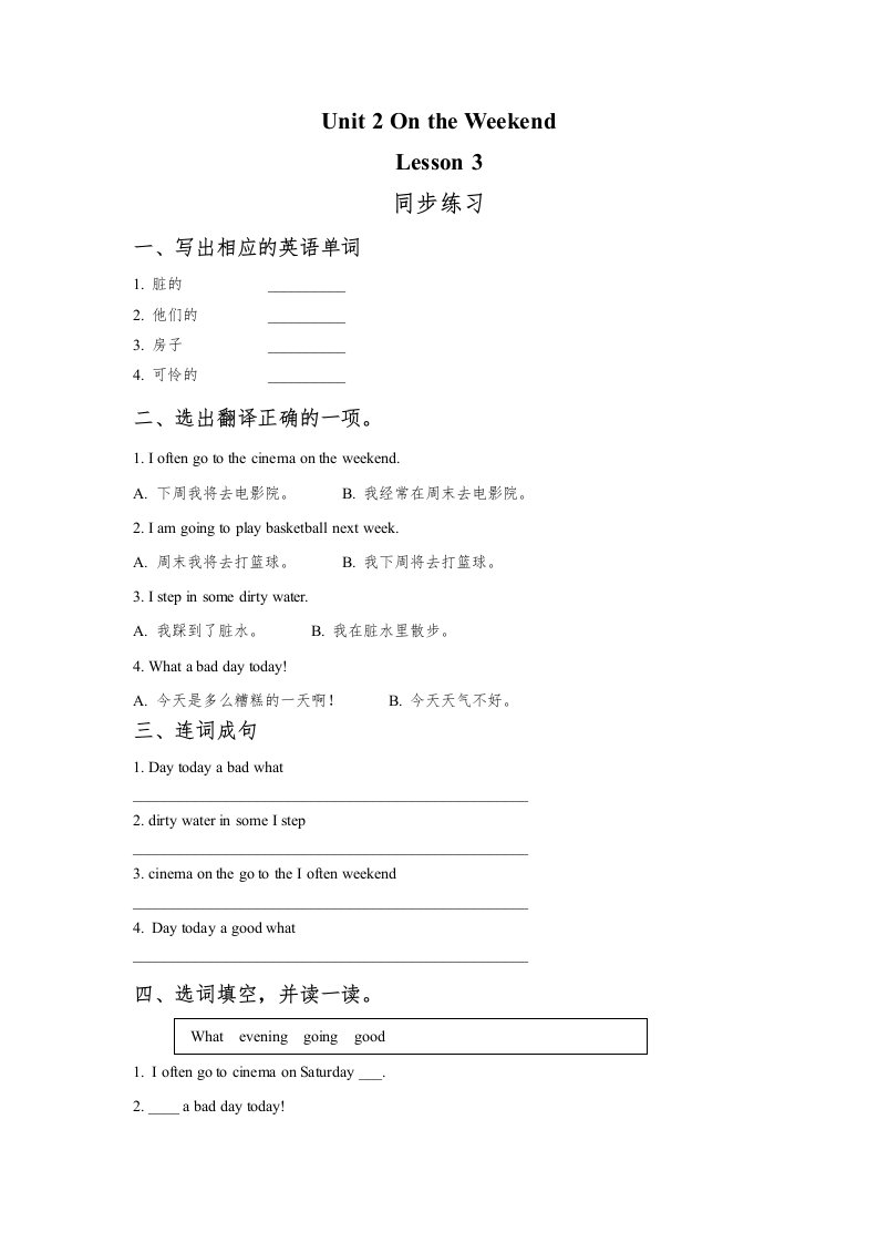 当前位置: 首页小学资源小学四年级正文 四年级英语上册Unit2OntheWeekendLesson3同步练习2(人教版一起点)_共2页 小学四年级 1 周前 0 0 5 以上为部分内容预览,如需源文档请登录您的会员账号进行下载! 声明:本站所有文章,如无特殊说明或标注,均为本站原创发布。任何个人或组织,在未征得本站同意时,禁止复制、盗用、采集、发布本站内容到任何网站、书籍等各类媒体平台。如若本站内容侵犯了原著者的合法权益,可联系我们进行处理。 尚学资源永久会员 打赏 收藏 海报 链接