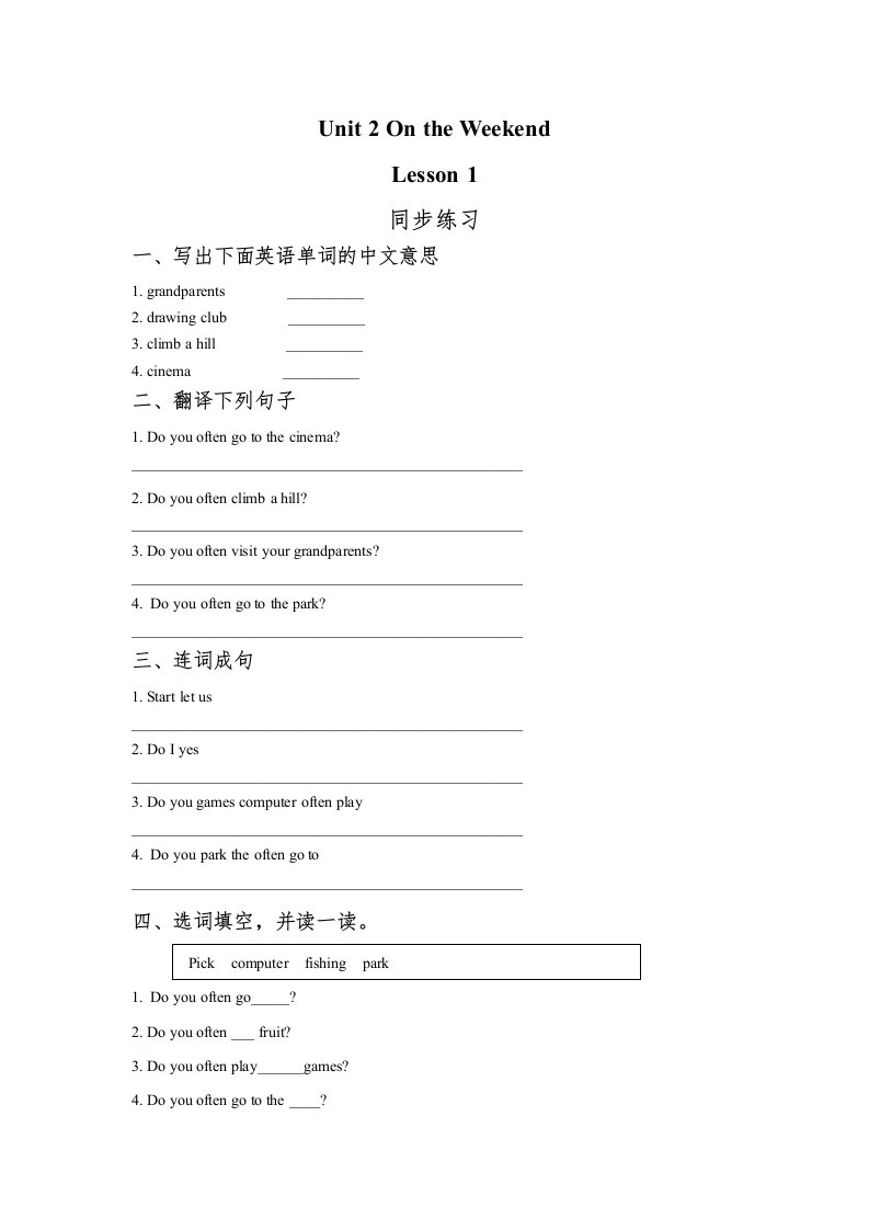 当前位置: 首页小学资源小学四年级正文 四年级英语上册Unit2OntheWeekendLesson1同步练习1(人教版一起点)_共2页 小学四年级 7 天前 0 0 5 以上为部分内容预览,如需源文档请登录您的会员账号进行下载! 声明:本站所有文章,如无特殊说明或标注,均为本站原创发布。任何个人或组织,在未征得本站同意时,禁止复制、盗用、采集、发布本站内容到任何网站、书籍等各类媒体平台。如若本站内容侵犯了原著者的合法权益,可联系我们进行处理。 尚学资源永久会员 打赏 收藏 海报 链接