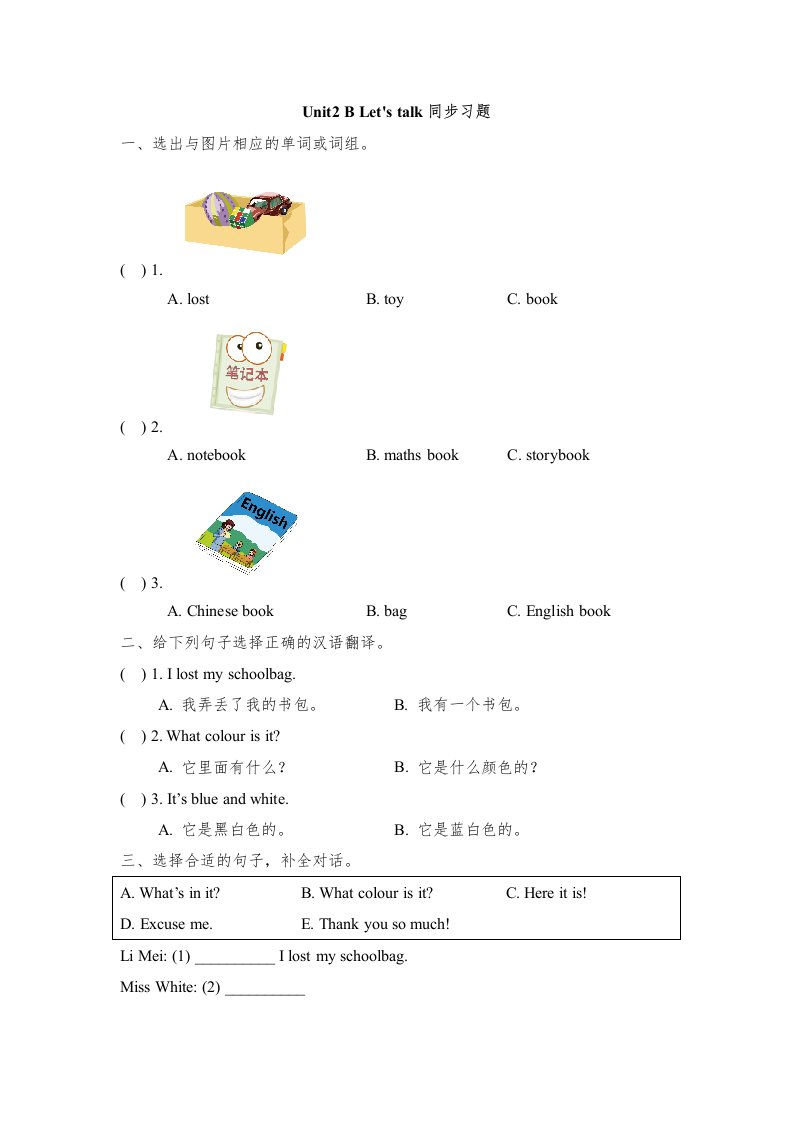 四年级英语上册Unit2_B_Let’s_talk同步习题(人教版一起点)_共3页