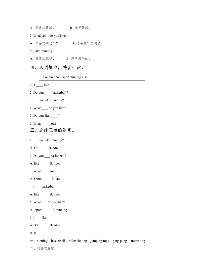 当前位置: 首页小学资源小学四年级正文 四年级英语上册Unit1SportandGamesLesson1同步练习1(人教版一起点)_共3页 小学四年级 1 周前 0 0 5 以上为部分内容预览,如需源文档请登录您的会员账号进行下载! 声明:本站所有文章,如无特殊说明或标注,均为本站原创发布。任何个人或组织,在未征得本站同意时,禁止复制、盗用、采集、发布本站内容到任何网站、书籍等各类媒体平台。如若本站内容侵犯了原著者的合法权益,可联系我们进行处理。 尚学资源永久会员 打赏 收藏 海报 链接