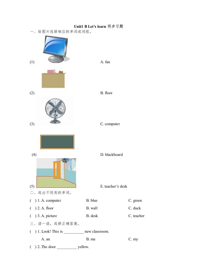 四年级英语上册Unit1_B_Let’s_learn同步习题(人教版一起点)_共3页