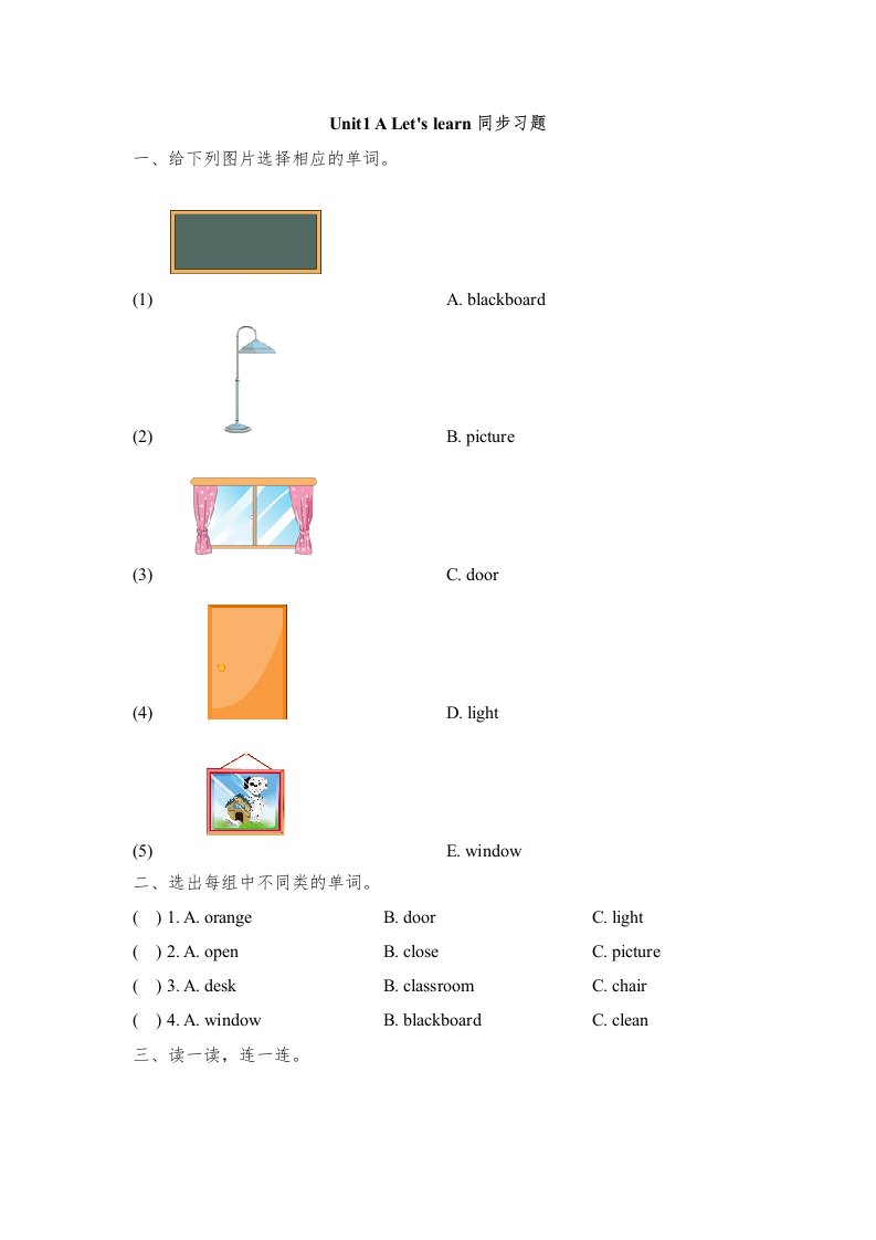 四年级英语上册Unit1_A_Let’s_learn同步习题(人教版一起点)_共4页