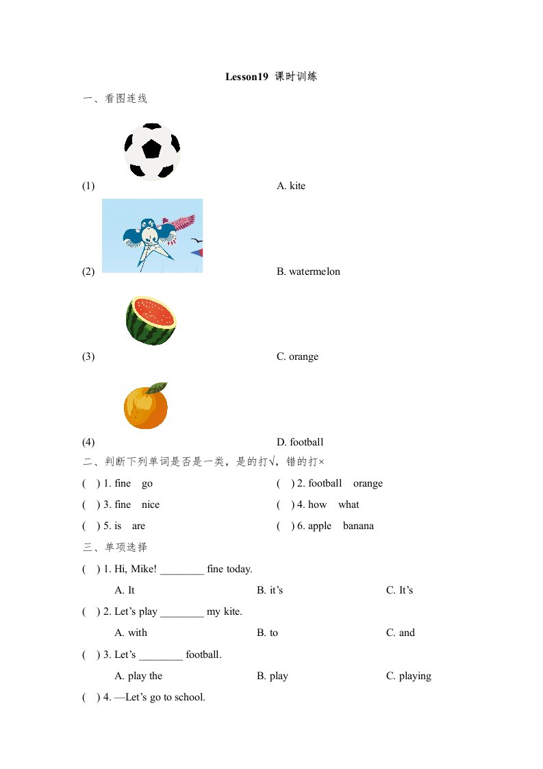 当前位置: 首页小学资源小学四年级正文 四年级英语上册Lesson19_课时训练(人教版一起点)_共3页 小学四年级 1 周前 0 0 5 以上为部分内容预览,如需源文档请登录您的会员账号进行下载! 声明:本站所有文章,如无特殊说明或标注,均为本站原创发布。任何个人或组织,在未征得本站同意时,禁止复制、盗用、采集、发布本站内容到任何网站、书籍等各类媒体平台。如若本站内容侵犯了原著者的合法权益,可联系我们进行处理。 尚学资源永久会员 打赏 收藏 海报 链接