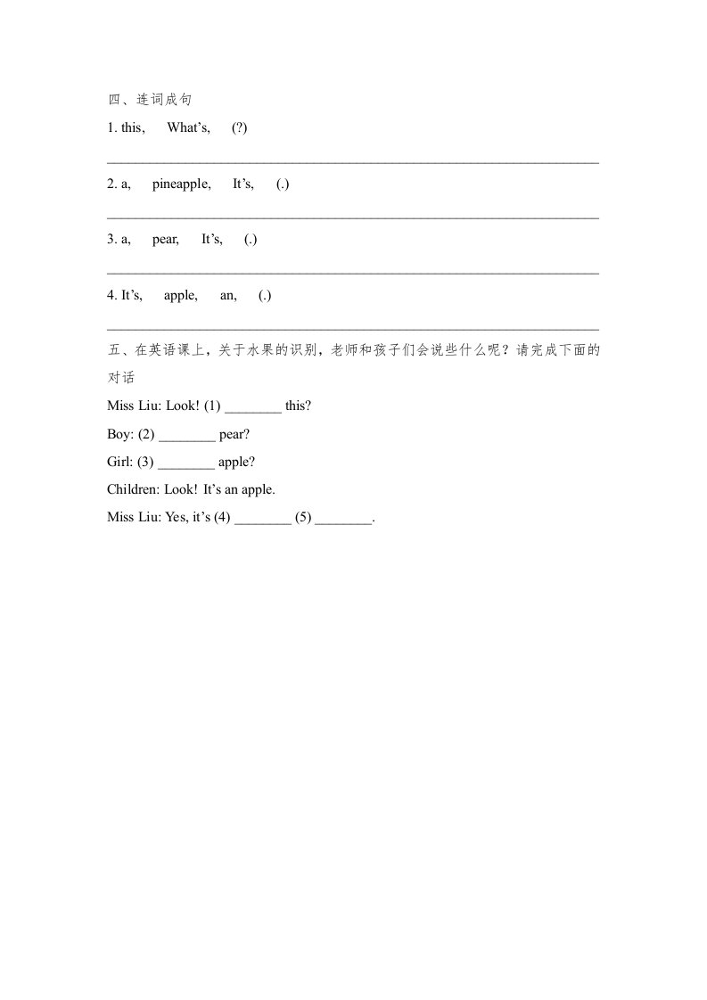 当前位置: 首页小学资源小学四年级正文 四年级英语上册Lesson13_课时训练(人教版一起点)_共3页 小学四年级 1 周前 0 0 5 以上为部分内容预览,如需源文档请登录您的会员账号进行下载! 声明:本站所有文章,如无特殊说明或标注,均为本站原创发布。任何个人或组织,在未征得本站同意时,禁止复制、盗用、采集、发布本站内容到任何网站、书籍等各类媒体平台。如若本站内容侵犯了原著者的合法权益,可联系我们进行处理。 尚学资源永久会员 打赏 收藏 海报 链接