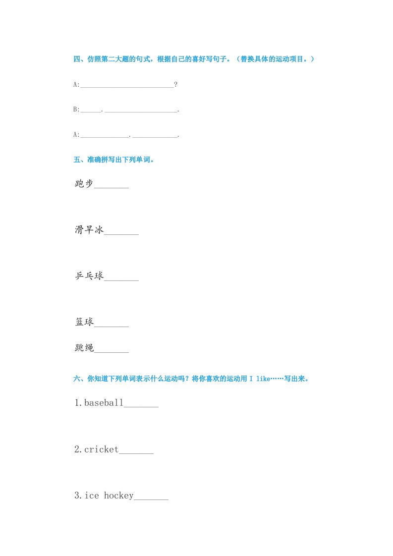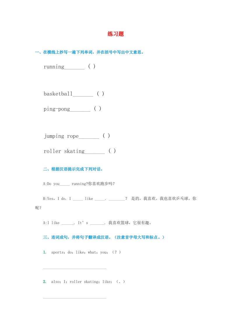 四年级英语上册练习题2(人教版一起点)_共3页