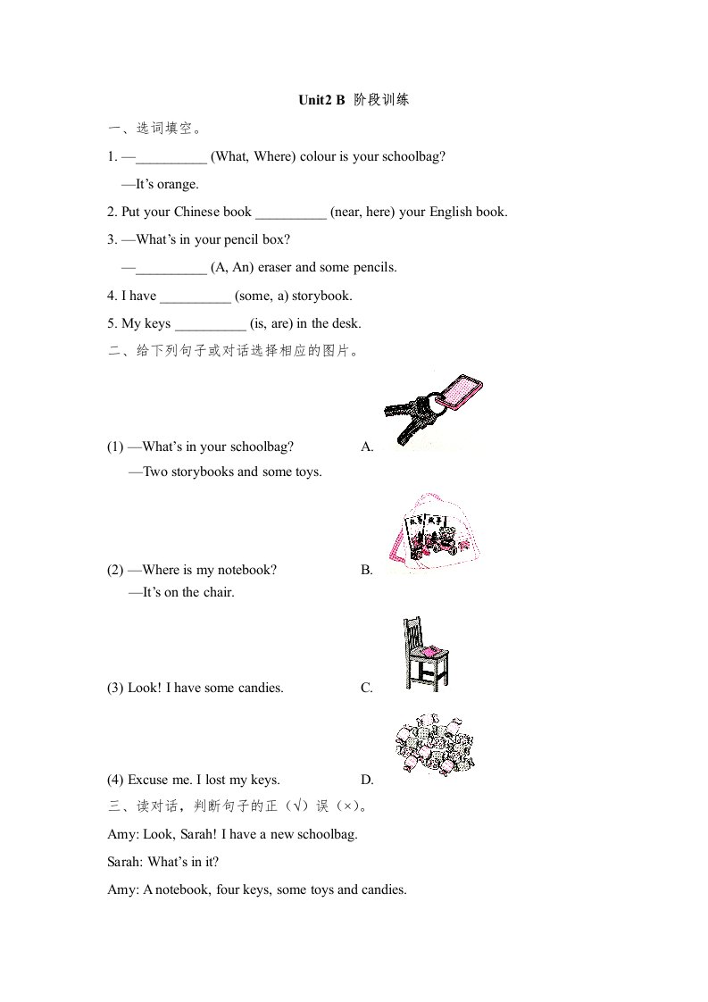 当前位置: 首页小学资源小学四年级正文 四年级英语上册Unit2_B_阶段训练(人教版一起点)_共3页 小学四年级 7 天前 0 0 5 以上为部分内容预览,如需源文档请登录您的会员账号进行下载! 声明:本站所有文章,如无特殊说明或标注,均为本站原创发布。任何个人或组织,在未征得本站同意时,禁止复制、盗用、采集、发布本站内容到任何网站、书籍等各类媒体平台。如若本站内容侵犯了原著者的合法权益,可联系我们进行处理。 尚学资源永久会员 打赏 收藏 海报 链接