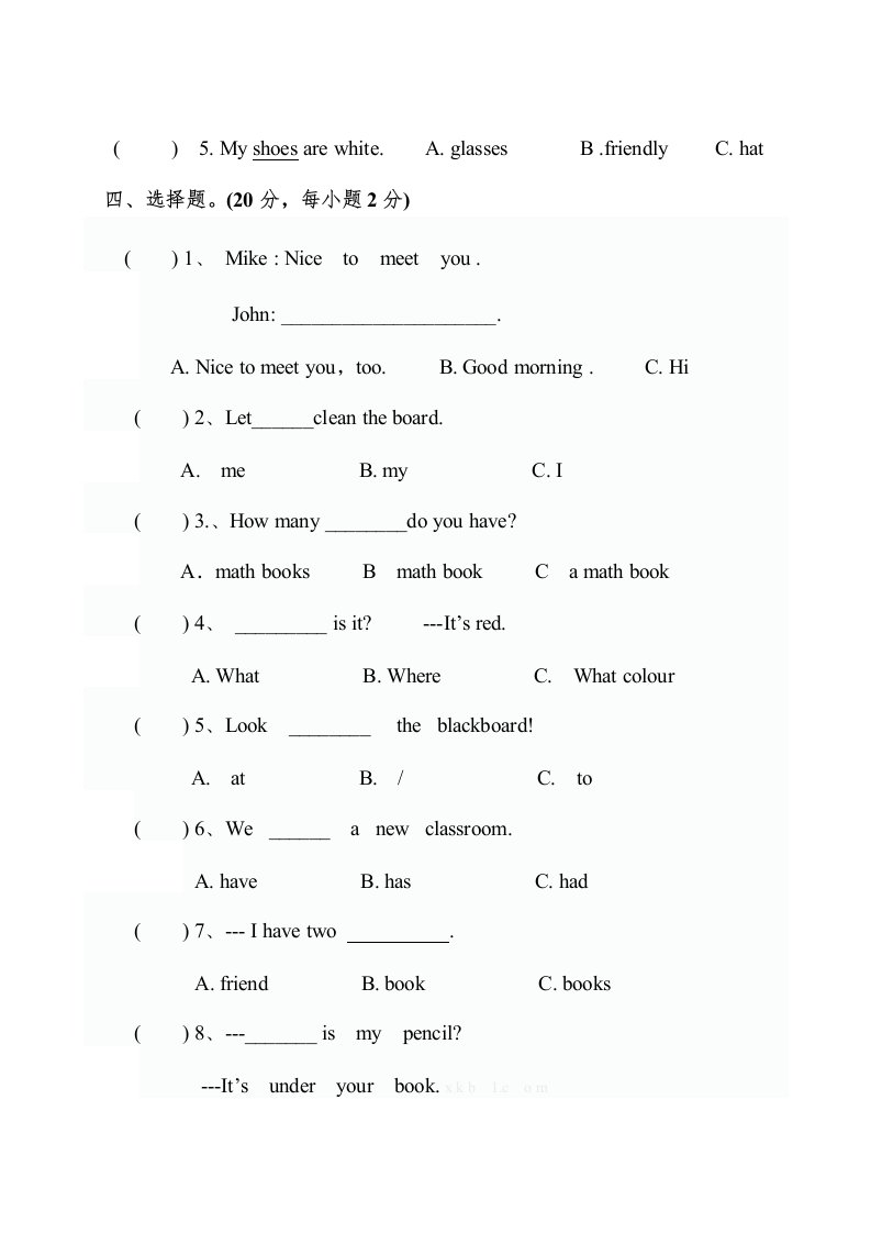 当前位置: 首页小学资源小学四年级正文 四年级英语上册期中测试卷6(人教PEP)_共4页 小学四年级 7 天前 0 0 5 以上为部分内容预览,如需源文档请登录您的会员账号进行下载! 声明:本站所有文章,如无特殊说明或标注,均为本站原创发布。任何个人或组织,在未征得本站同意时,禁止复制、盗用、采集、发布本站内容到任何网站、书籍等各类媒体平台。如若本站内容侵犯了原著者的合法权益,可联系我们进行处理。 尚学资源永久会员 打赏 收藏 海报 链接